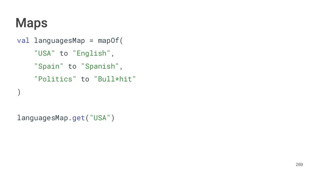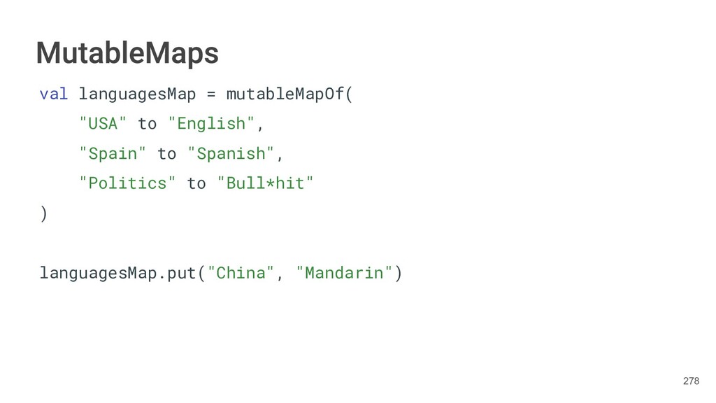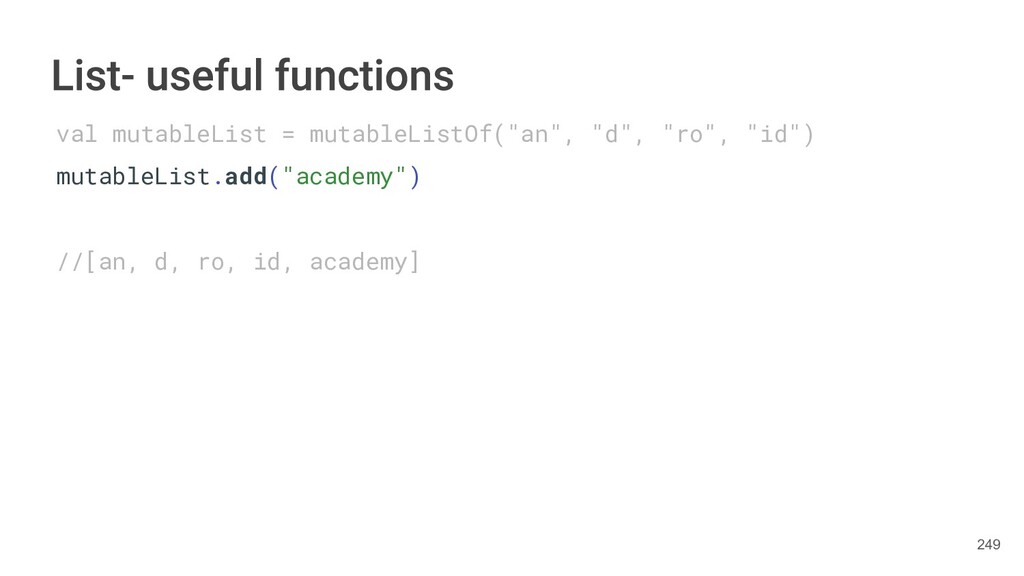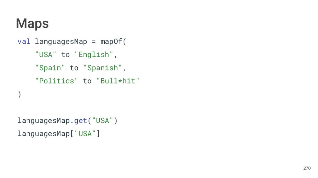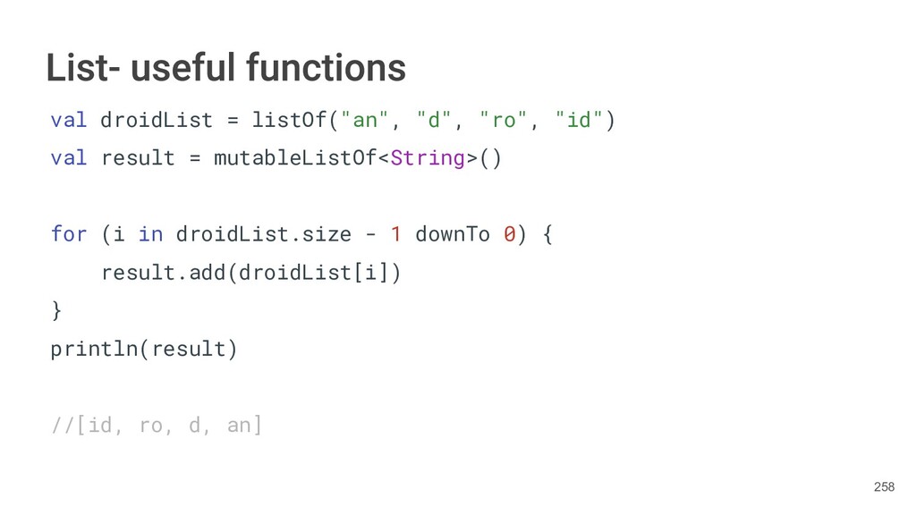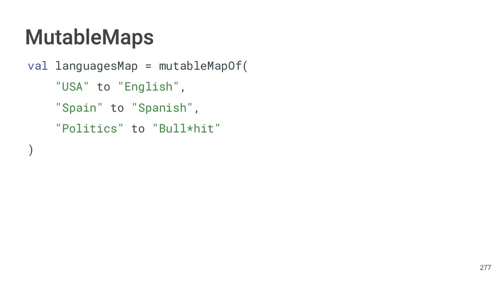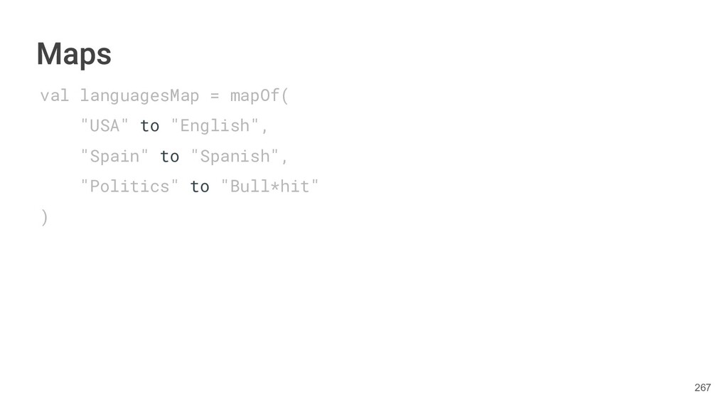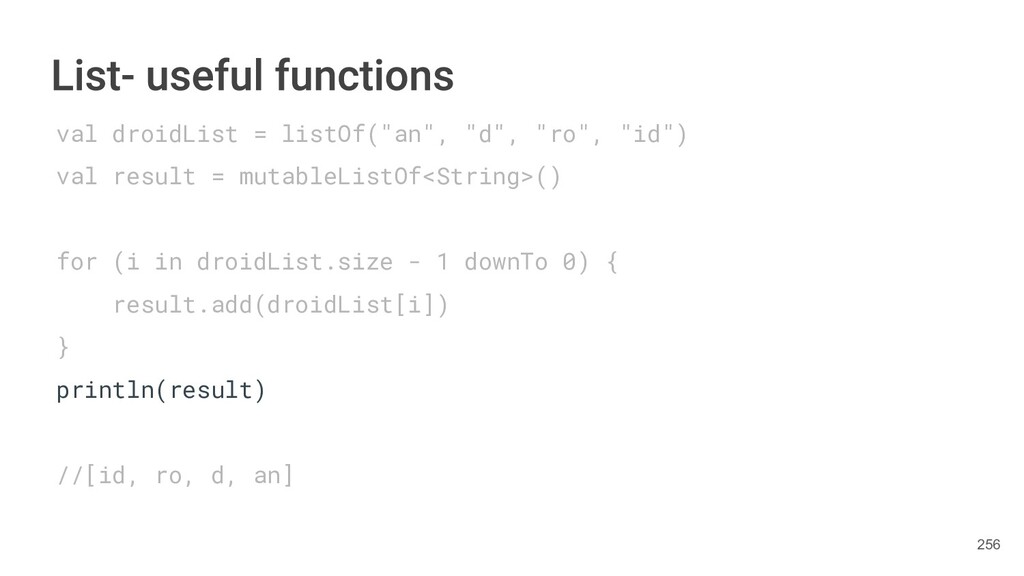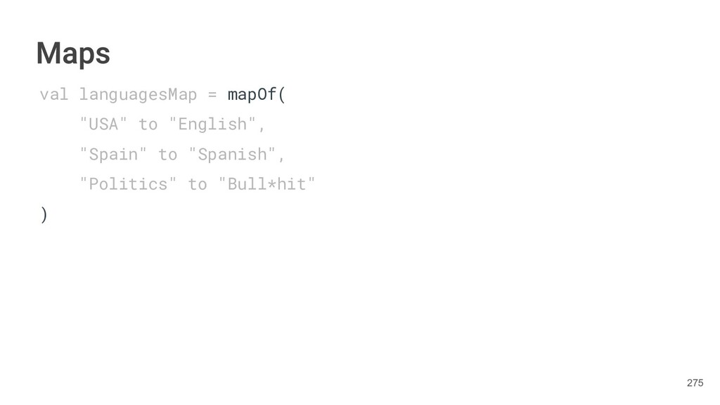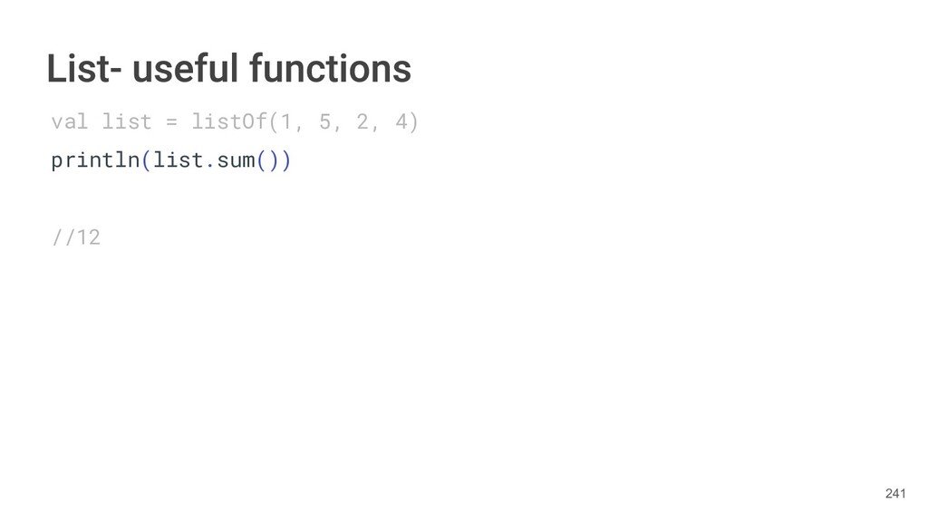 Kotlin Standard Library provides implementations for basic collection types: sets, lists, and maps. • Each type have two options: ◦ A read-only interface. ◦ Mutable interface with write operations. 236