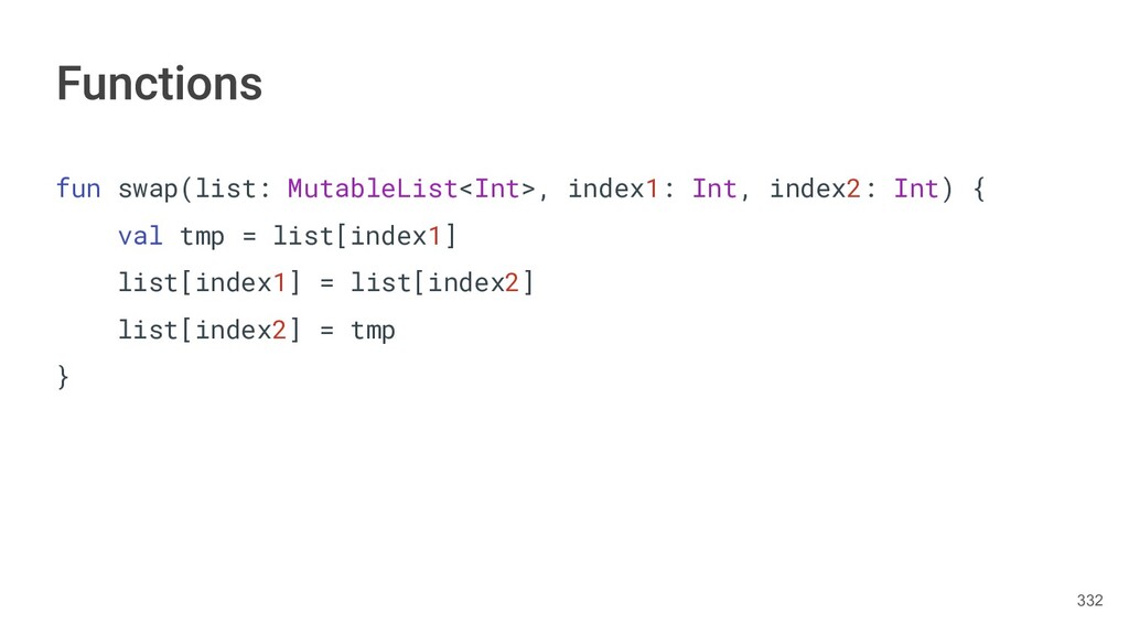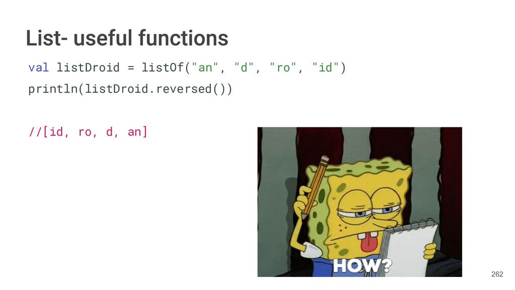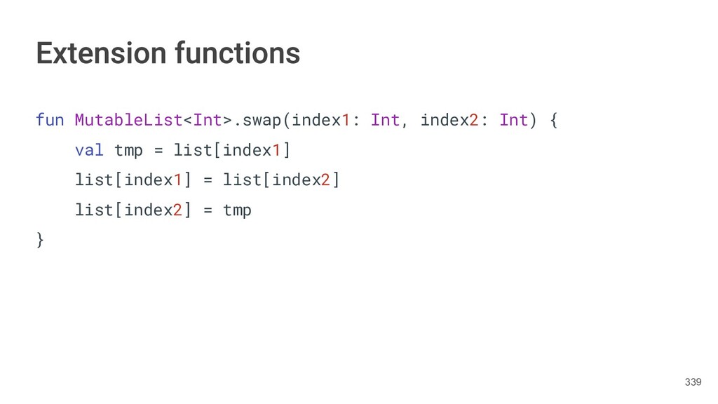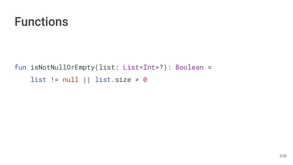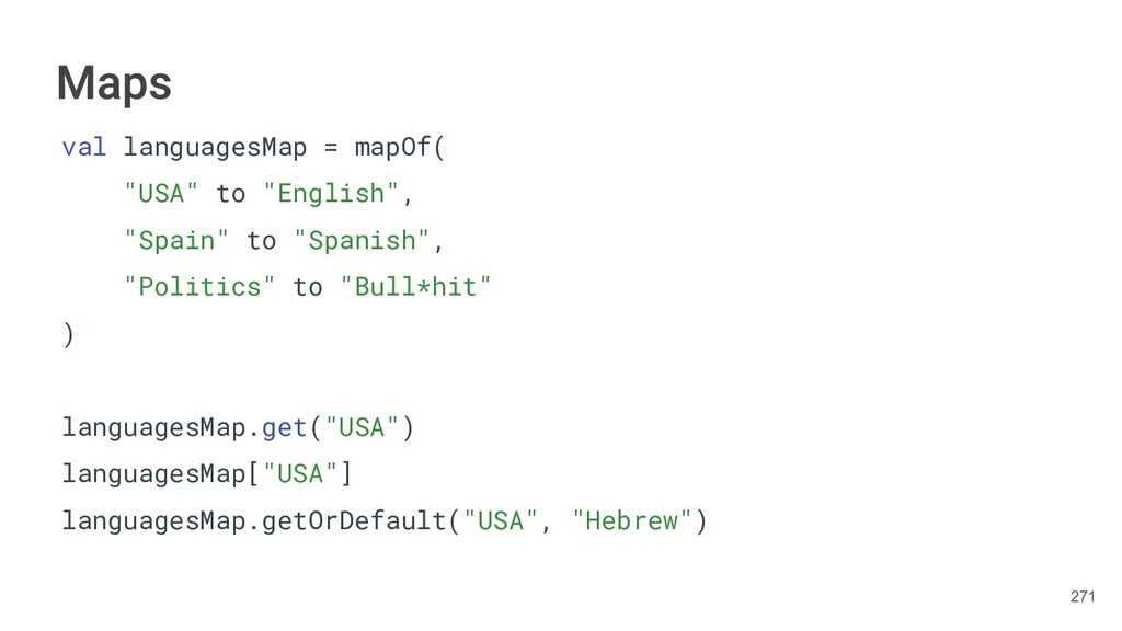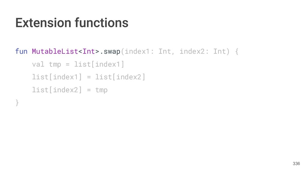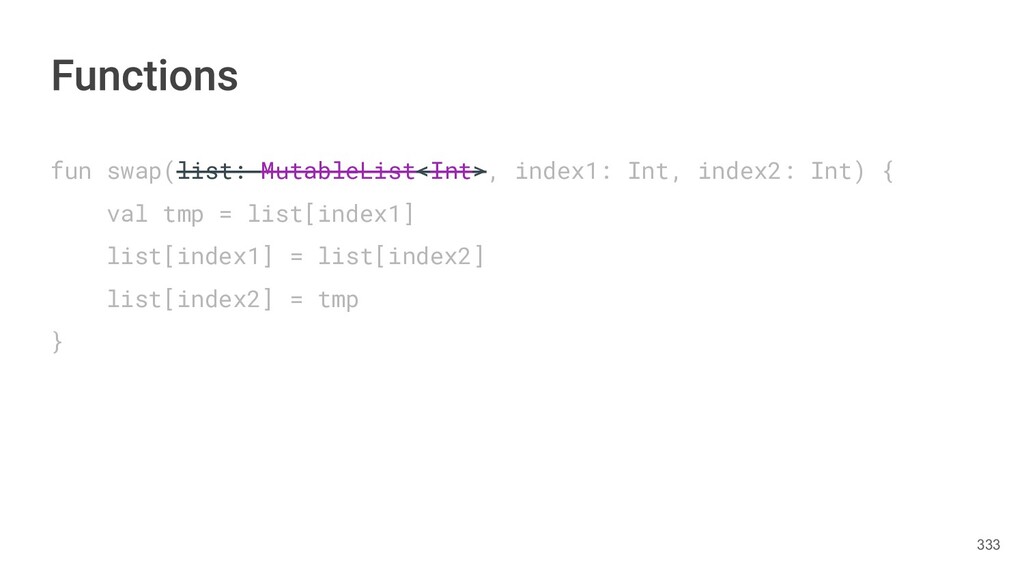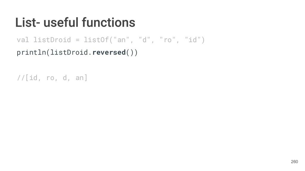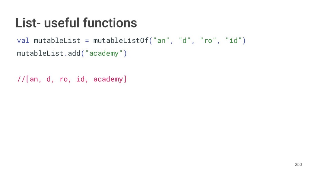 Kotlin Standard Library provides implementations for basic collection types: sets, lists, and maps. • Each type have two options: ◦ A read-only interface. ◦ Mutable interface with write operations. 236