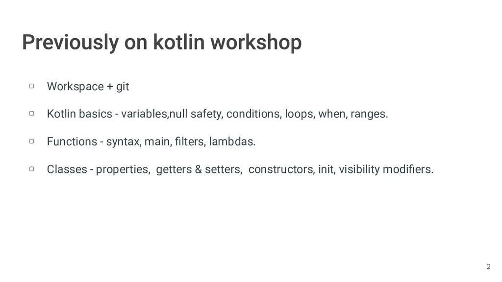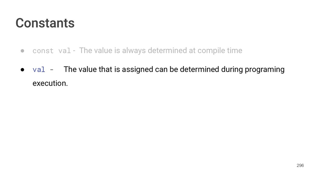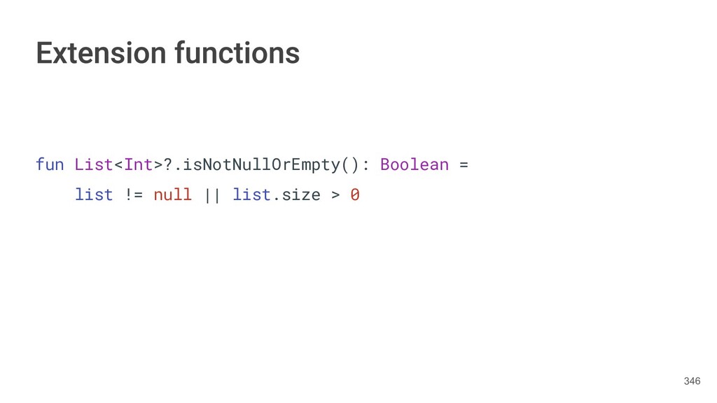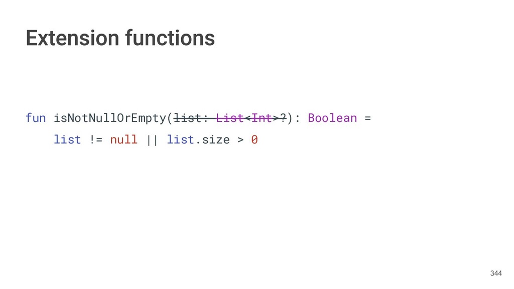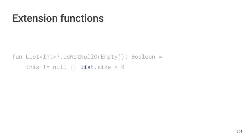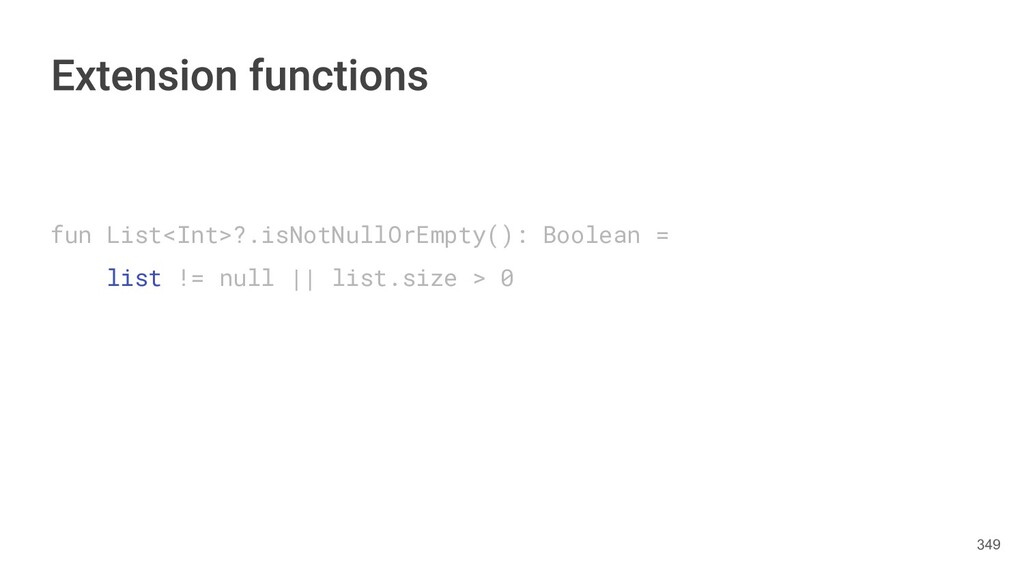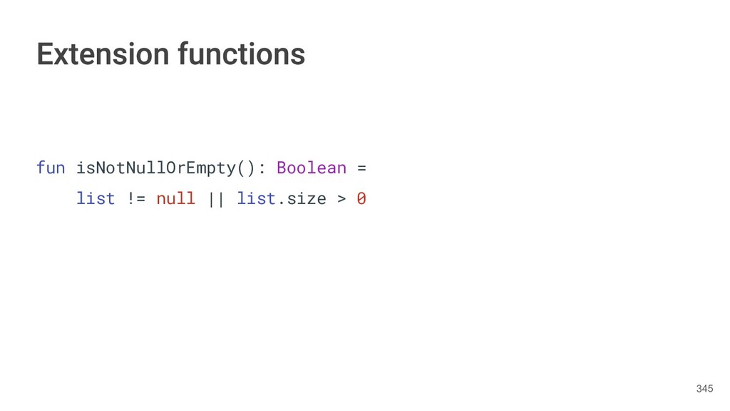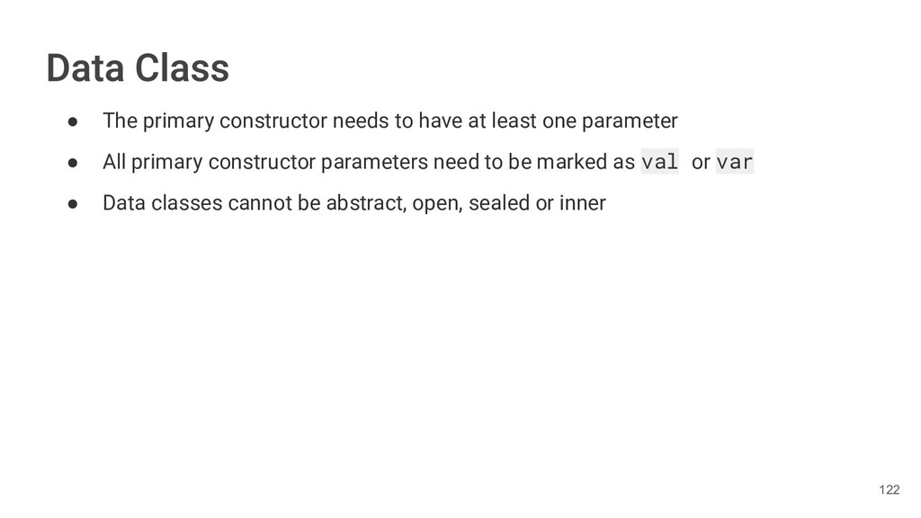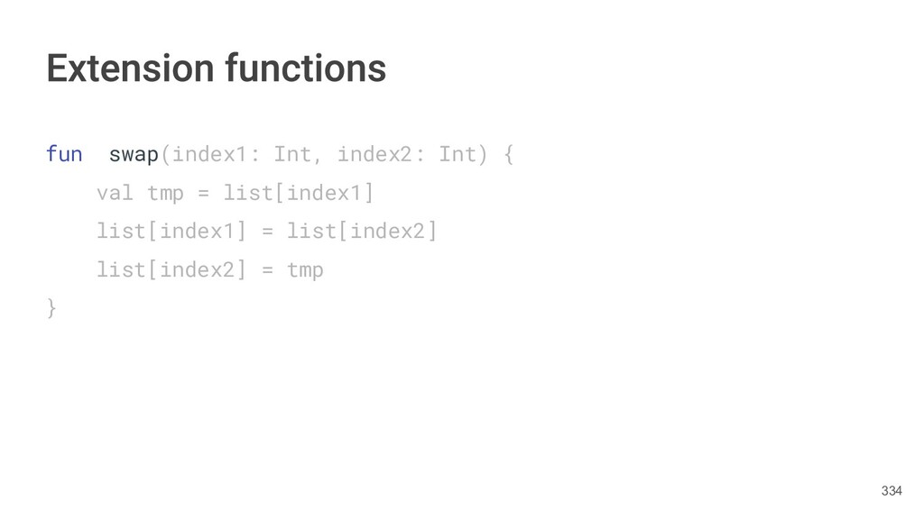 Kotlin Standard Library provides implementations for basic collection types: sets, lists, and maps. • Each type have two options: ◦ A read-only interface. ◦ Mutable interface with write operations. 236