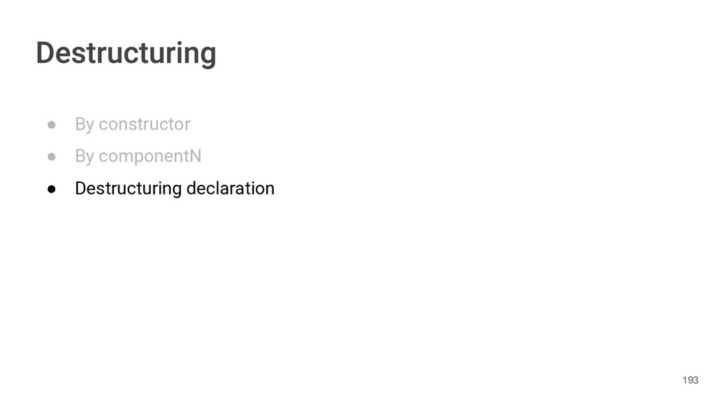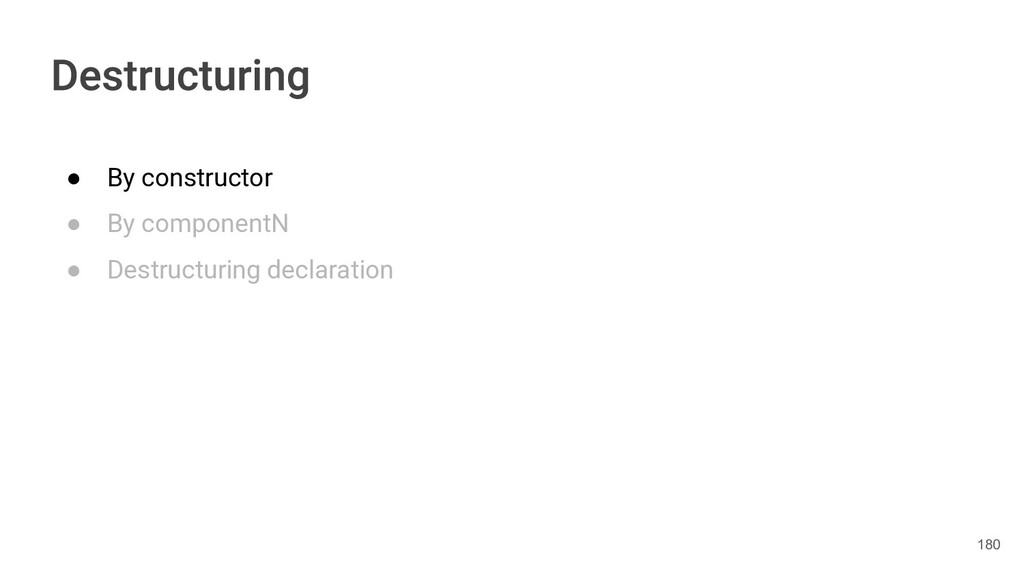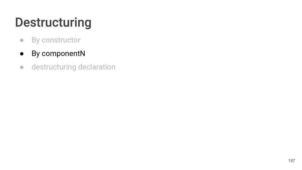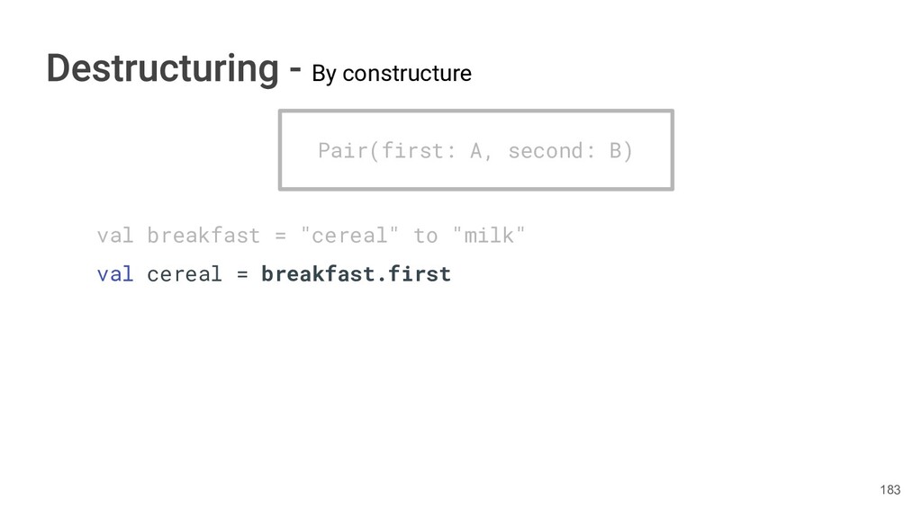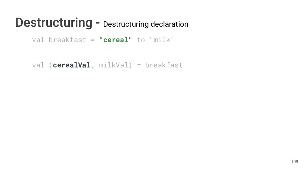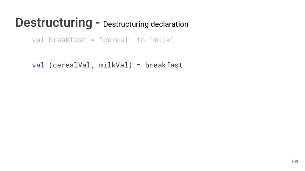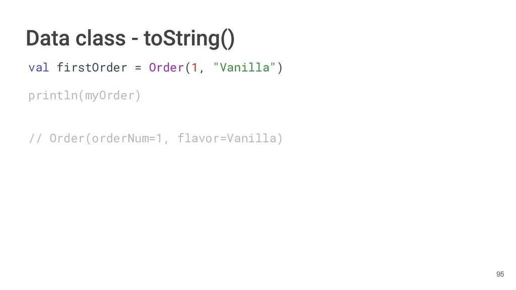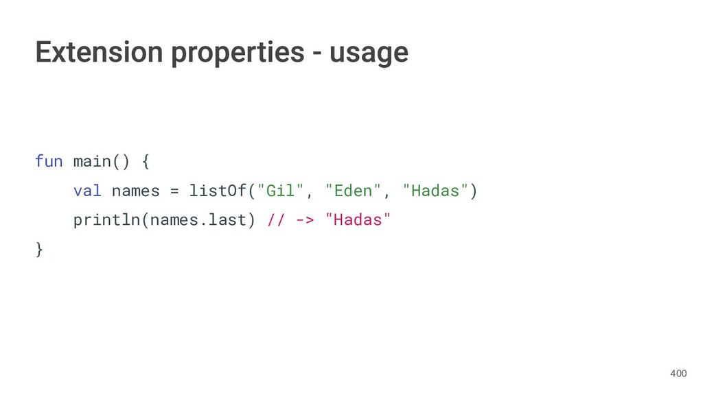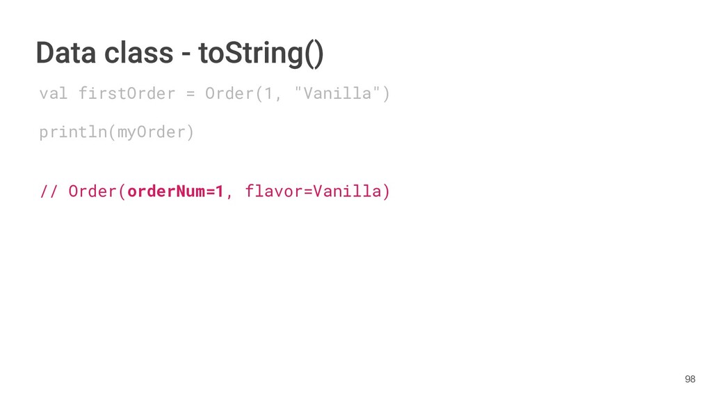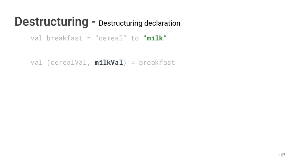 sentence fun main() { val book = Book("Orlando", "Virginia Woolf", 1928) val (title, author, year) = book.getTitleAndAuthorAndYear() println("Here is your book $title written by $author in $year.") } 286