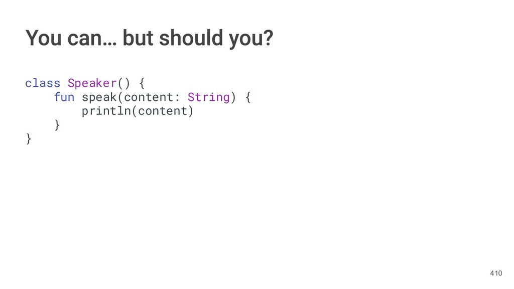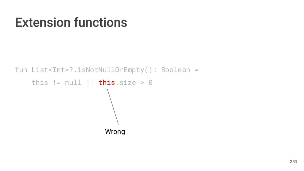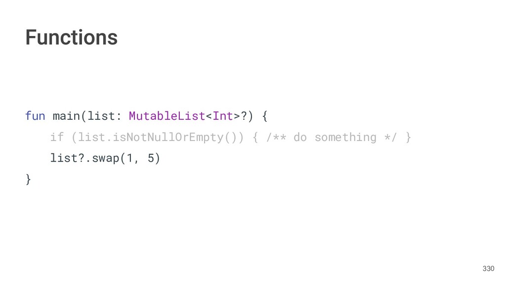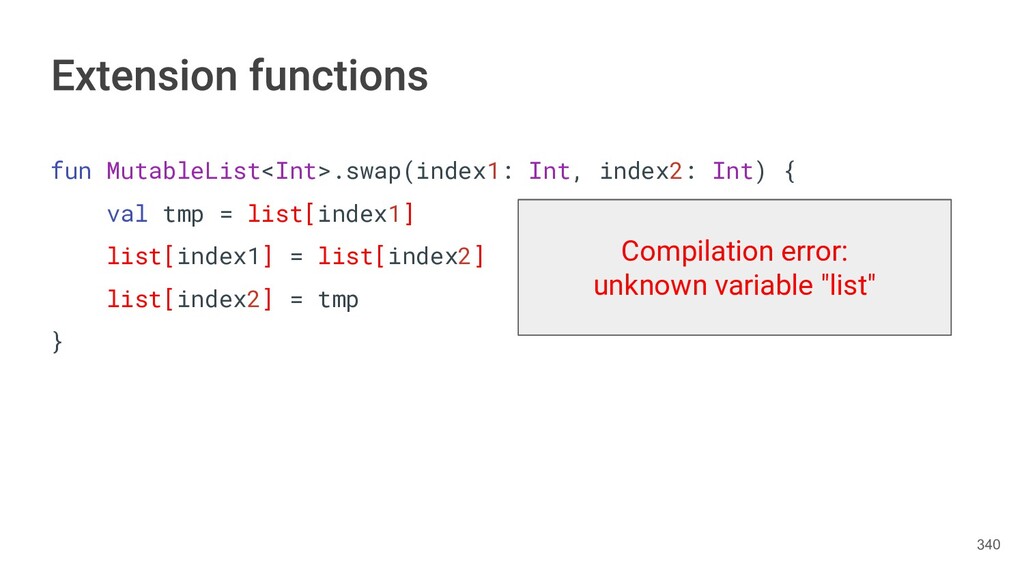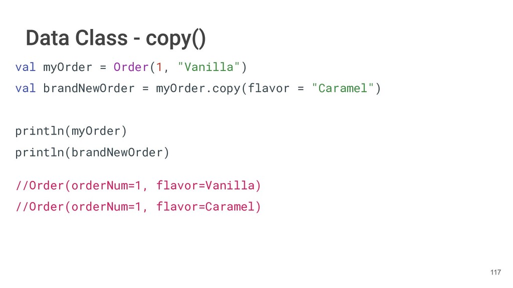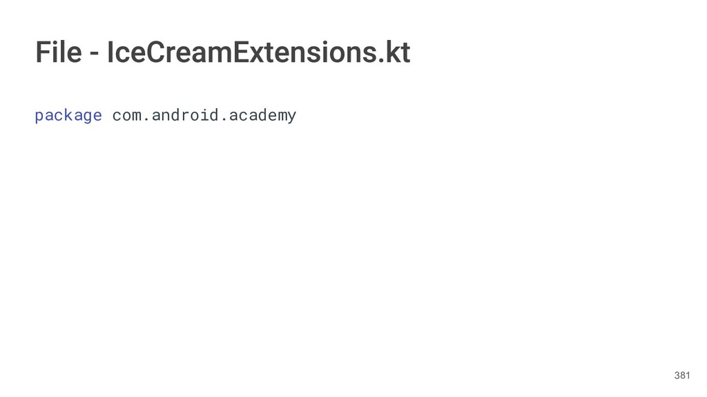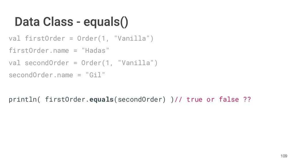 fun findBestIceCream(iceCreams: List<IceCream>): IceCream { val result = IceCream() for(iceCream in iceCreams) { // secret algorithm } return result } 232