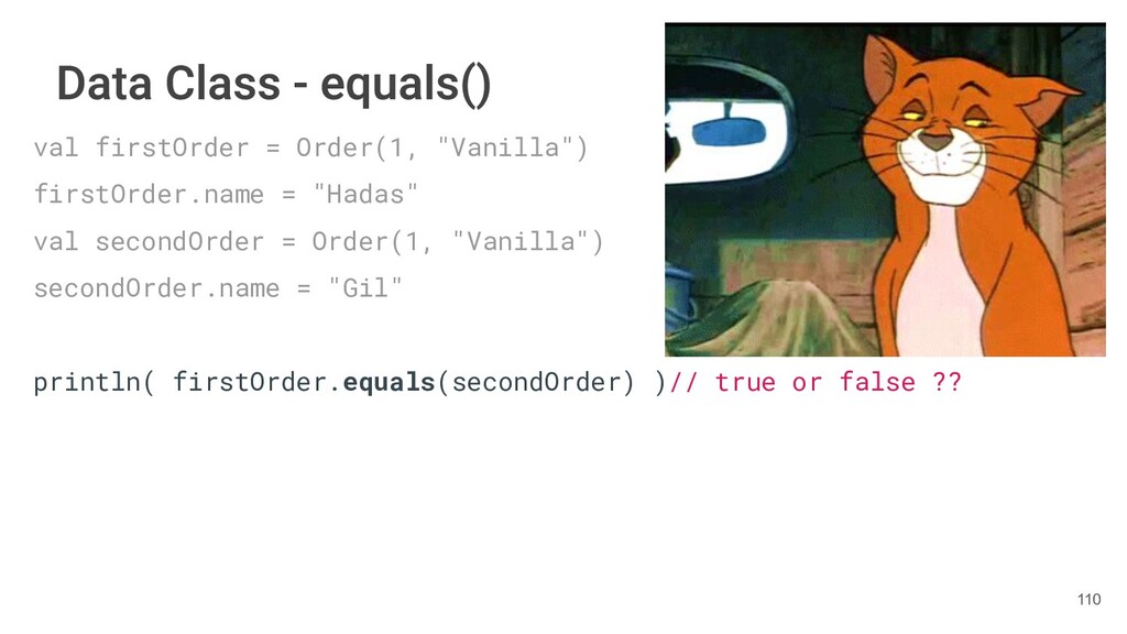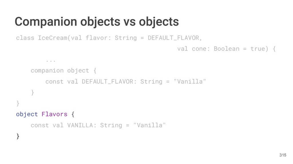 fun findBestIceCream(iceCreams: List<IceCream>): IceCream { val result = IceCream() for(iceCream in iceCreams) { // secret algorithm } return result } 229
