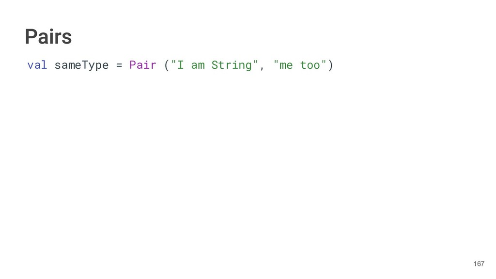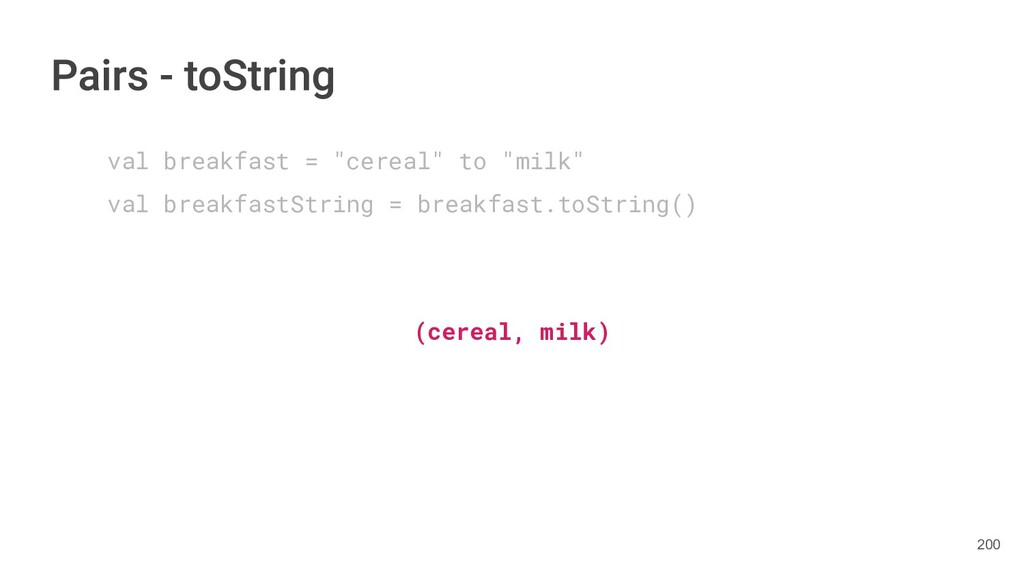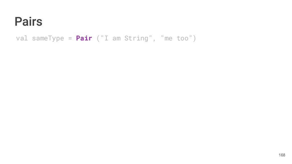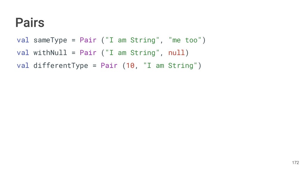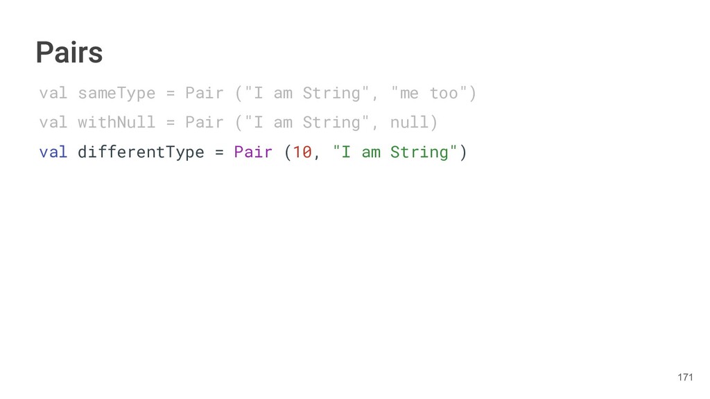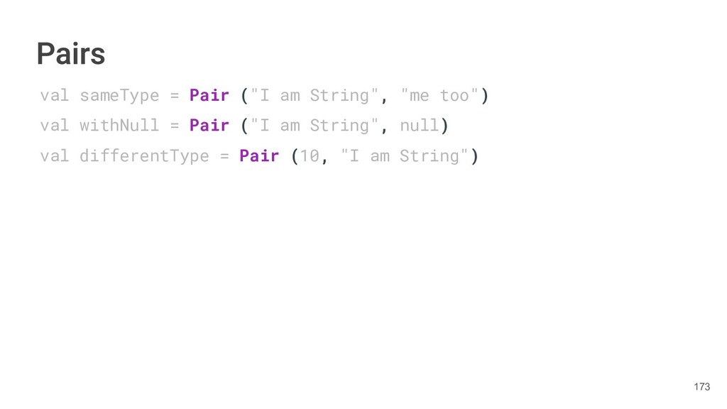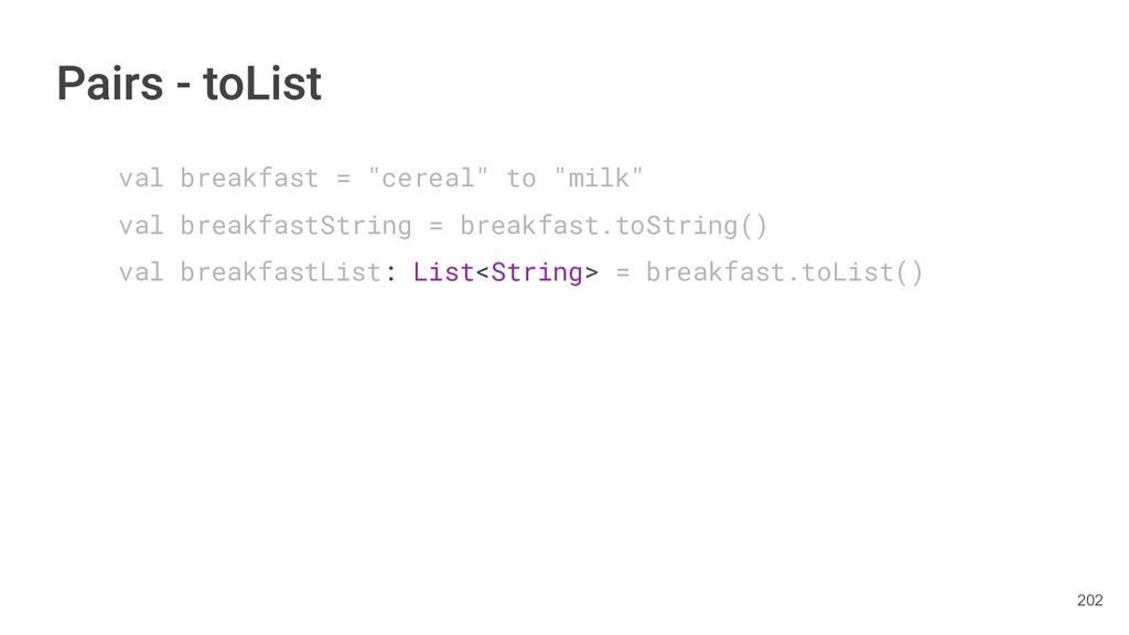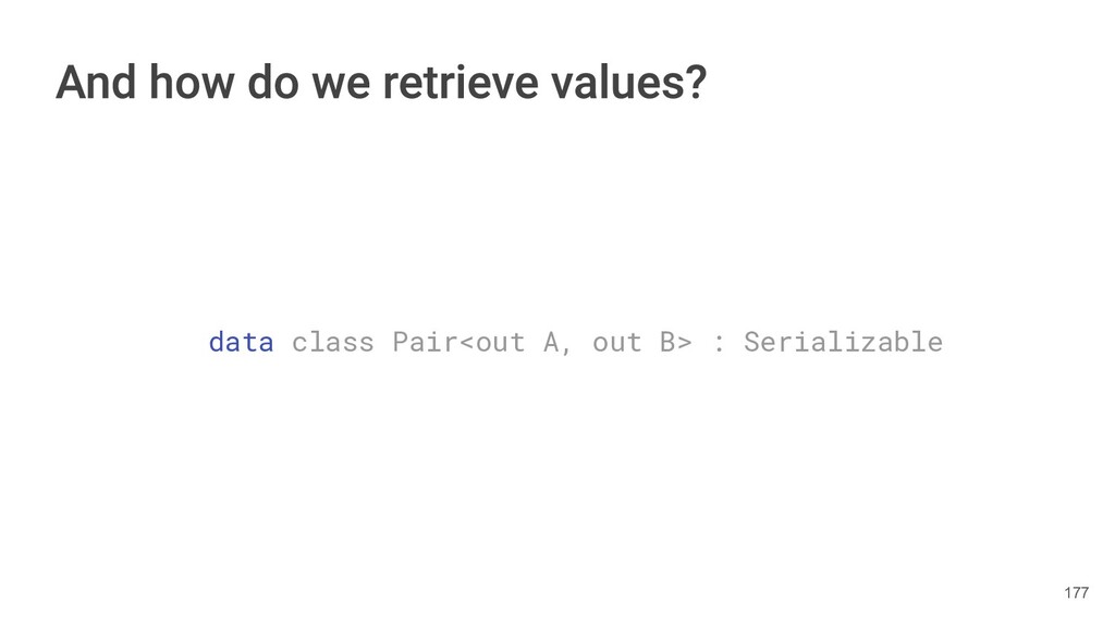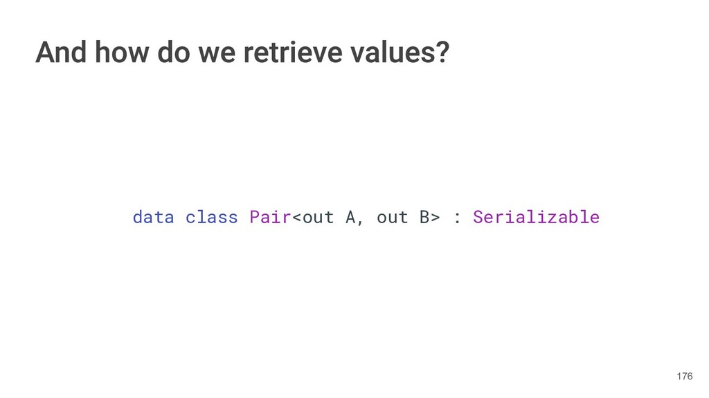 year as a Triple. class Book(val title: String, val author: String, val year: Int){ fun getTitleAndAuthor(): Pair<String,String>{ return Pair(title, author) } fun getTitleAndAuthorAndYear(): Triple<String,String, Int>{ return Triple(title, author, year) } } 284