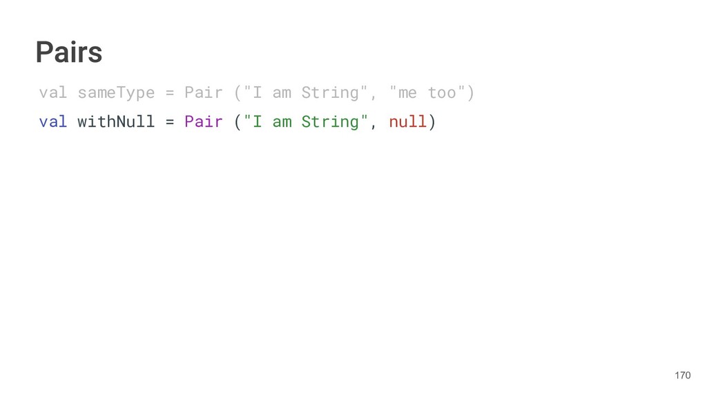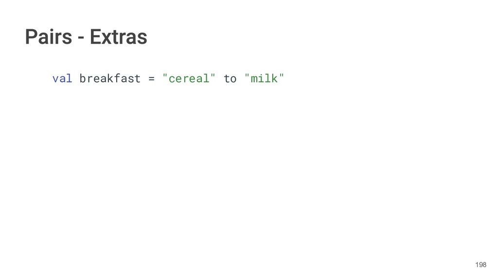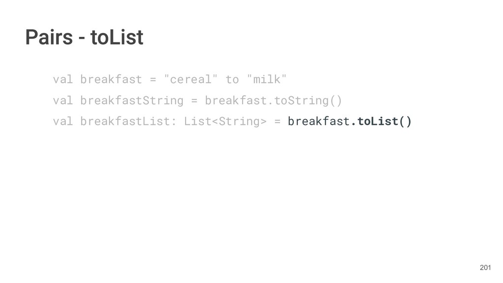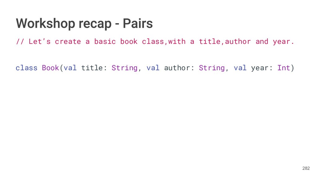 the author as a Pair. class Book(val title: String, val author: String, val year: Int){ fun getTitleAndAuthor(): Pair<String,String>{ return Pair(title, author) } } 283