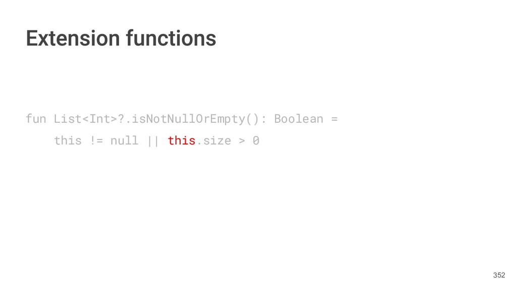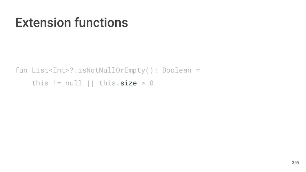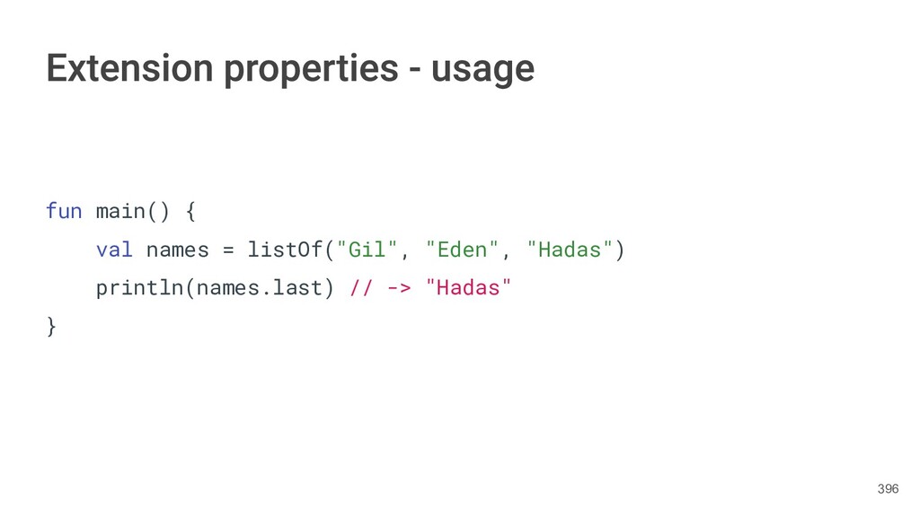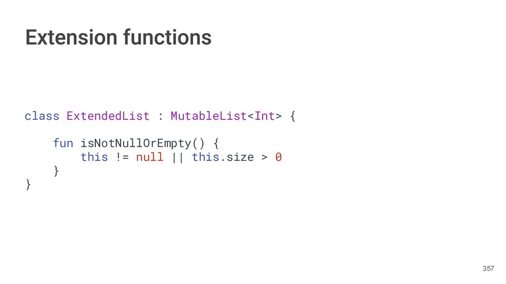 functionality without having to inherit from the class or use a design patterns such as Decorator. Kotlin provides this ability using two methods. • Extension function • Extension property 331