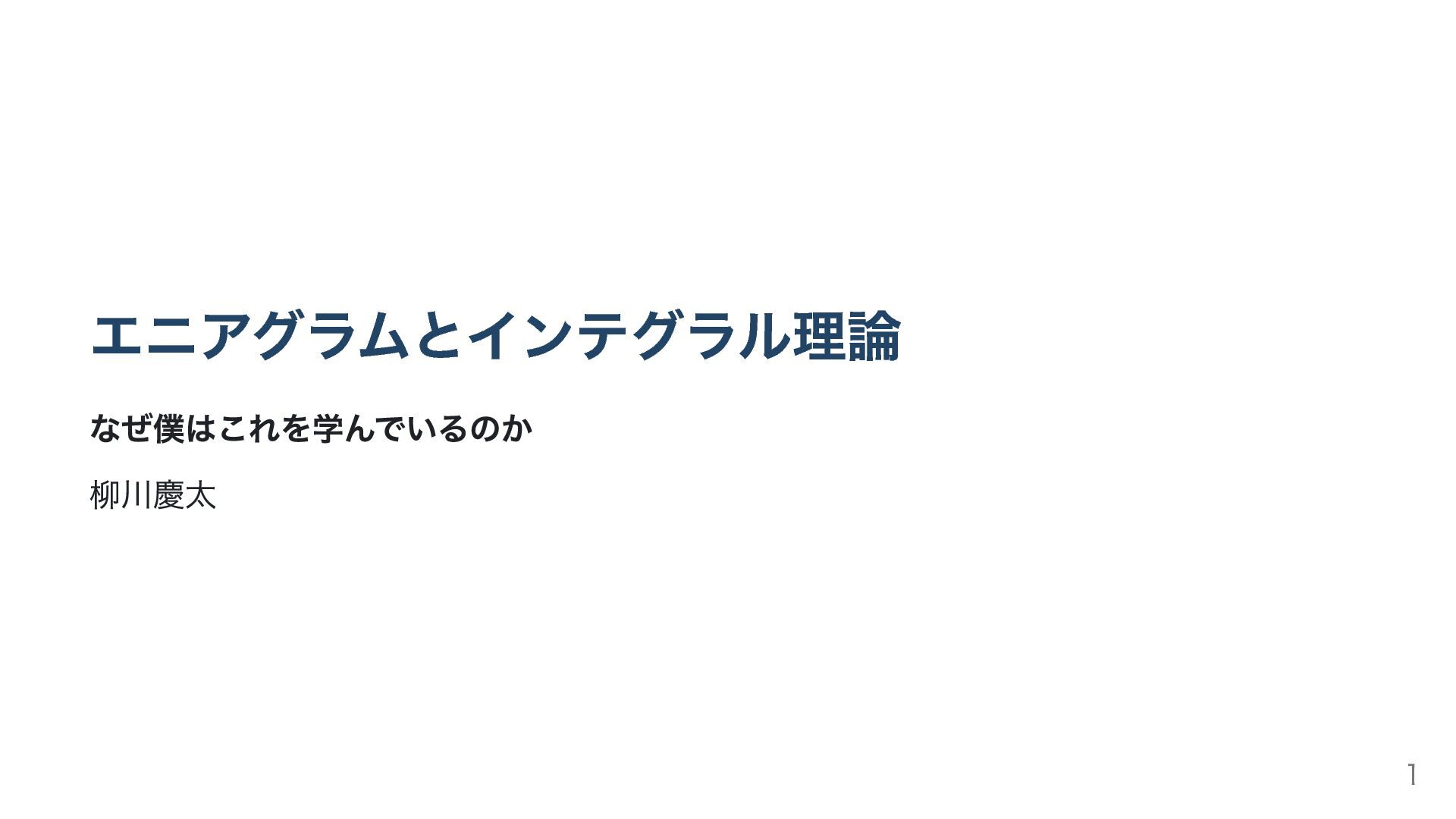 エニアグラムとインテグラル理論 なぜ僕はこれを学んでいるのか 柳川慶太 1