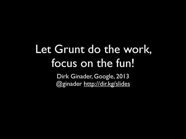 In this presentation, Dirk will show you how to set up the Grunt JavaScript Task Runner so that you and your team can focus on the fun!
