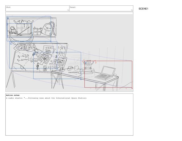 open a new program for young talents..." Shot 1.4 Panel 1 Action notes "...from all over the world. The requirements to participate will be to present a project..." Shot 1.4 Panel 2 Action notes The radio stops. Shot 1.4 Panel 3 Shot 1.4 Panel 4 Shot 2 Panel 1 Shot 2 Panel 2 J H I J J J J