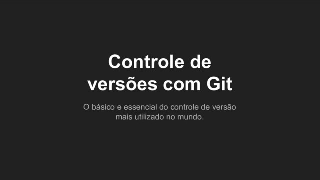 O básico e essencial de Git, o controle de versão mais utilizado no mundo. Ponha seus códigos online e contribua em qualquer projeto de código aberto do mundo. Tenha a certeza estar apto para trabalhar com qualquer equipe de software.