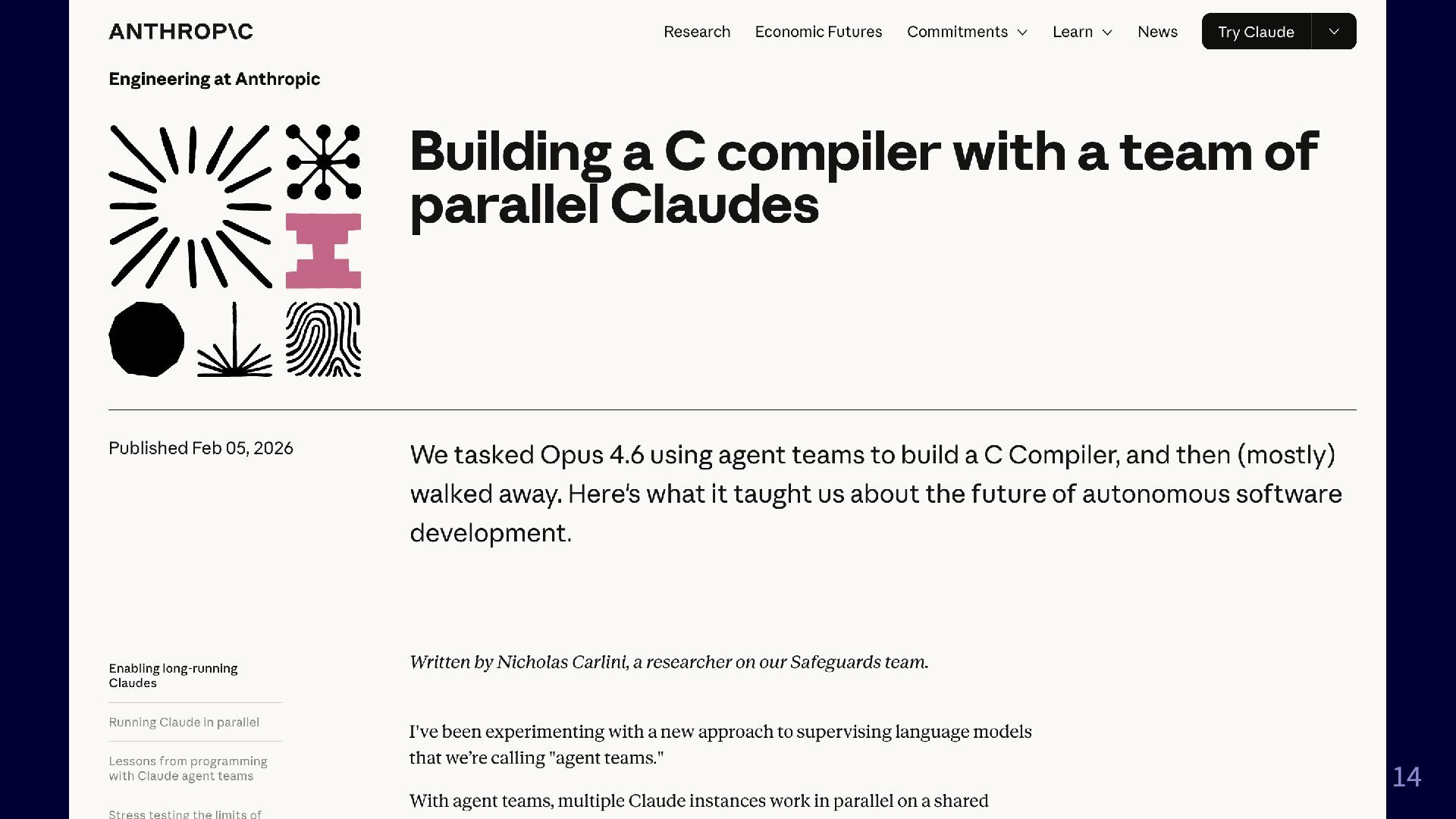 Rust 置き換えが流行り始めてる? https://www.anthropic.com/engineering/building-c-compiler 16体のエージェントに、 Linux カーネルをコンパイルできる Rust ベースの C コンパイラをゼロから作成
