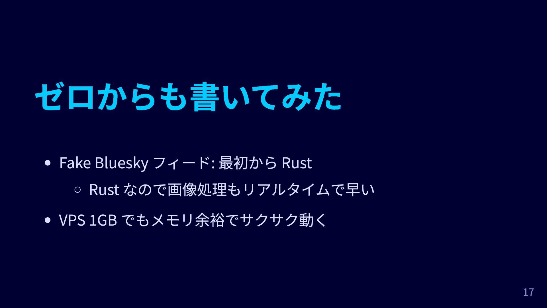 ゼロからも書いてみた Fake Bluesky フィード: 最初から Rust Rust なので画像処理もリアルタイムで早い VPS 1GB