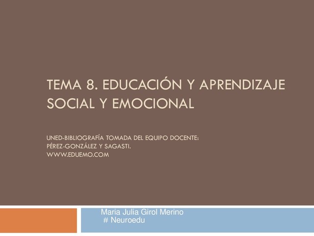 las emociones: La Teoría de James-Lange: Las emociones se generan primero a nivel inconsciente, y después, inmediatamente se experimenta la percepción subjetiva y surge el sentimiento. Panksepp (2011) y LeDoux (2011): Se puede experimentar cambios fisiológicos sin sentimiento y al contrario. Damasio (1994): Utiliza el término marcadores emocionales que corresponde a “recuerdos emocionales” , que reducen el número de opciones , tiempo y aumenta eficacia en la toma de decisiones.