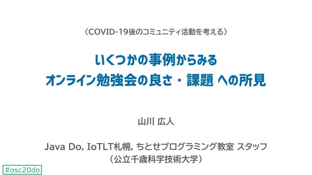 #osc20do 〈COVID-19後のコミュニティ活動を考える〉 いくつかの事例からみる オンライン勉強会の良さ・課題 への所見 山川 広人 Java Do,