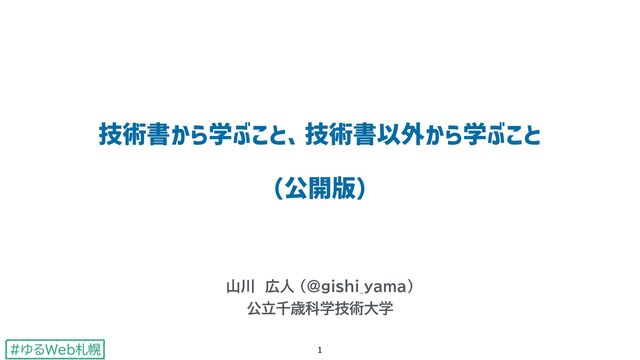 #ゆるWeb札幌 技術書から学ぶこと、技術書以外から学ぶこと (公開版) 山川 広人 (@gishi_yama) 公立千歳科学技術大学 1