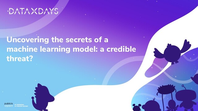 Il existe de nombreux types d’attaques contre les modèles de machine learning, dont une partie se consacre à révéler des informations confidentielles sur les données ayant servi à leur entraînement. Nous avons mis notre chapeau de hacker pour creuser le sujet et vous proposons, dans ce talk, de discuter de la crédibilité de telles menaces.