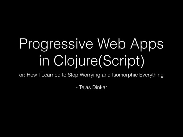 about HTML5 ServiceWorker + PWA • Clj + Cljs working together, without duplication • This talk will not cover • a lot of plumbing (which you can find in repo)