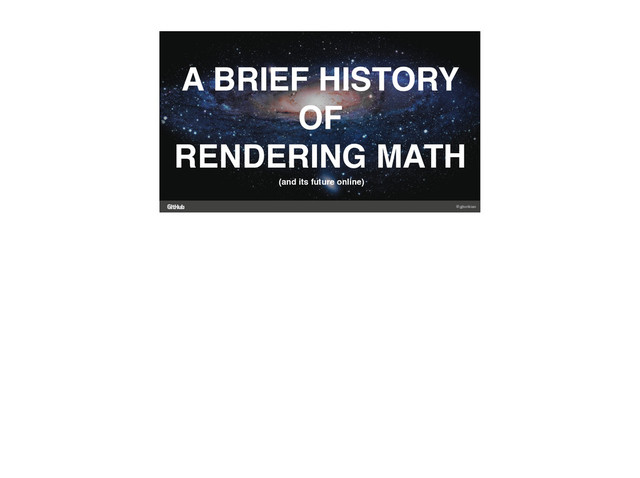 is, for all intents and purposes, perfect, as a browser-based, client-side rendering solution. The problem is that many offline build tools are using it in conjunction with other languages, in lieu of anything better. For example, Kramdown, a Markdown converter written in Ruby, calls out to MathJax, in JavaScript, to render math equations. In fact, nearly every single program I found that’s used to render documents calls out to the MathJax JavaScript library to perform math rendering. We’ve stopped using JavaScript solely on the client-side, and have begun interspersing it with other languages. This causes horrid performance. Expecting MathJax to render documents on your local machine takes far longer than it should. I’ll show a demo of this later on.