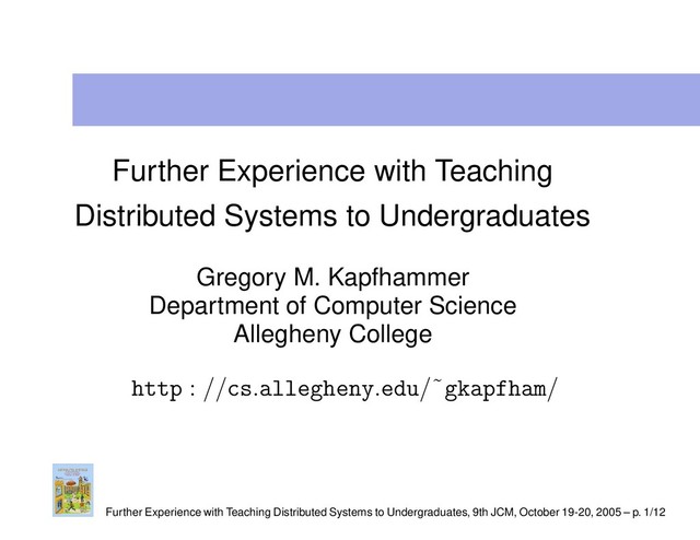 //cs.allegheny.edu/˜gkapfham/teach/cs441/ Further Experience with Teaching Distributed Systems to Undergraduates, 9th JCM, October 19-20, 2005 – p. 12/12