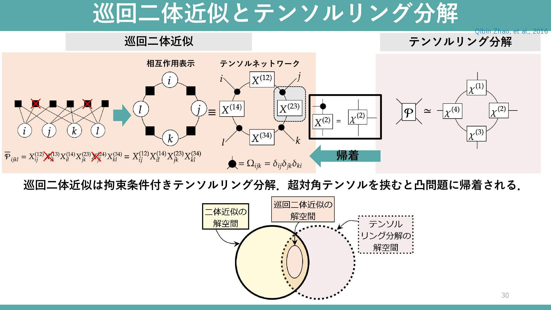巡回二体近似とテンソルリング分解 30 巡回二体近似 相互作用表示 テンソルネットワーク テンソルリング分解 Qibin Zhao, et al.,