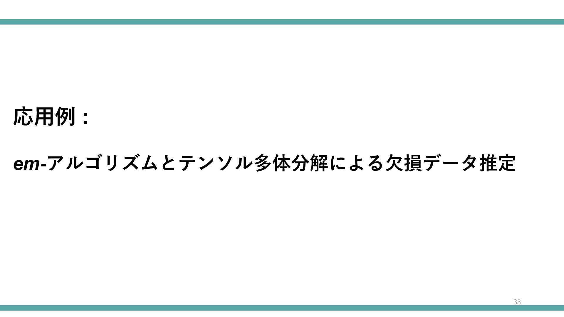 応用例 : em-アルゴリズムとテンソル多体分解による欠損データ推定 33