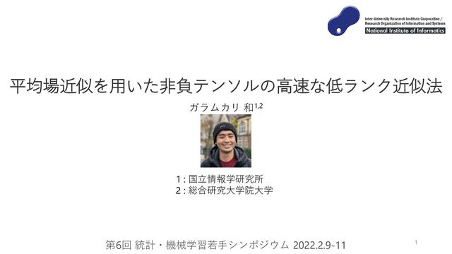 𝑛 𝑖1 , 𝑗1 ≤ 𝑖2 , 𝑗2 ⟺ 𝑖1 ≤ 𝑖2 and 𝑗1 ≤ 𝑗2 11 21 31 12 22 32 33 23 31 𝜽𝟏𝟏 𝜽𝟏𝟐 𝜽𝟐𝟐 𝜽𝟐𝟏 𝜼𝟐𝟐 𝜼𝟑𝟐 𝜼𝟐𝟑 𝜼𝟑𝟑 Normalizer 𝑆 = 𝑖, 𝑗, 𝑘 |𝑖, 𝑗, 𝑘 = 1,2, ⋯ 𝑛 𝑖1 , 𝑗1 , 𝑘1 ≤ 𝑖2 , 𝑗2 , 𝑘2 ⟺ 𝑖1 ≤ 𝑖2 and 𝑗1 ≤ 𝑗2 and 𝑘1 ≤ 𝑘2 𝑝𝜂 (2,2) = 𝜂22 − 𝜂23 − 𝜂32 + 𝜂33 𝑝𝜃 (2,2) = exp 𝜃11 + 𝜃12 + 𝜃21 + 𝜃22 𝑝𝜃 (𝑖, 𝑗) = exp 𝑖′≤𝑖 𝑗′≤𝑗 𝜃𝑖′𝑗′ 𝑝𝜃 (𝑖, 𝑗, 𝑘) = exp 𝑖′≤𝑖 𝑗′≤𝑗 𝑘′≤𝑘 𝜃𝑖′𝑗′𝑘′ 𝑝𝜃 (1,1,2) = exp 𝜃111 + 𝜃112 𝑝𝜂 1,1,2 = 𝜂222 − 𝜂221 − 𝜂122 + 𝜂112 行列 テンソル 111 121 122 112 221 222 212 211 Normalizer 確率変数:テンソルの添字𝐢, 𝐣, 𝐤 標本空間:添字集合 確率の値:テンソルの値𝓟𝒊𝒋𝒌 テンソルと確率分布の対応 10 確率変数:行列の添字𝐢, 𝐣 標本空間:添字集合 確率の値:行列の値𝓟𝒊𝒋 行列と確率分布の対応