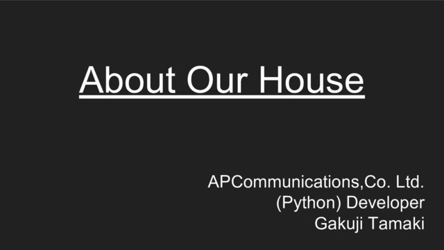 About Our House APCommunications,Co. Ltd. (Python) Developer Gakuji Tamaki