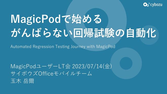 | BrowserStack, https://www.browserstack.com/guide/regression-testing , 2023/07/14 n Appファイルの作成方法 – MagicPodヘルプセンター, https://support.magic- pod.com/hc/ja/articles/4408836787609 , 2023/07/14 n スタートガイド:5.テスト自動化の習慣を最速で定着させる(モバイルアプリ) – MagicPodヘルプセン ター, https://support.magic-pod.com/hc/ja/articles/7515195778457 , 2023/07/14 n 一括テスト実行・コマンドラインテスト実行(ローカルPCテスト) – MagicPodヘルプセン ター, https://support.magic-pod.com/hc/ja/articles/6468420020633 , 2023/07/14 n クラウドアップロードした任意のAppファイル(アーカイブ)をMagicPodのクラウド環境下でインストールできるよ うにする · Issue #516 · Magic-Pod/japanese-issue-and-doc, https://github.com/Magic-Pod/japanese-issue-and- doc/issues/516 , 2023/07/14 n iOSの実行時間がAndroidよりも遅い – MagicPodヘルプセンター, https://support.magic- pod.com/hc/ja/articles/20127503942425 , 2023/07/14 n グラフ機能の概要 | kintone ヘルプ, https://jp.cybozu.help/k/ja/user/app_settings/report.html , 2023/07/14