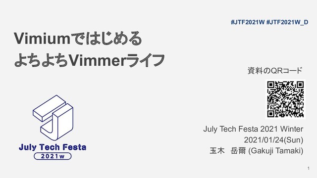 Vimiumではじめる よちよちVimmerライフ July Tech Festa 2021 Winter 2021/01/24(Sun) 玉木 岳爾 (Gakuji