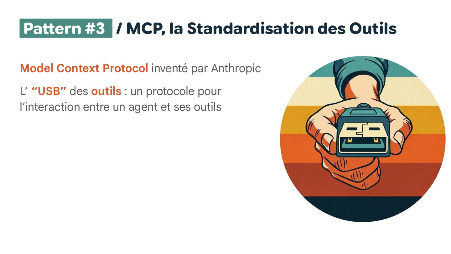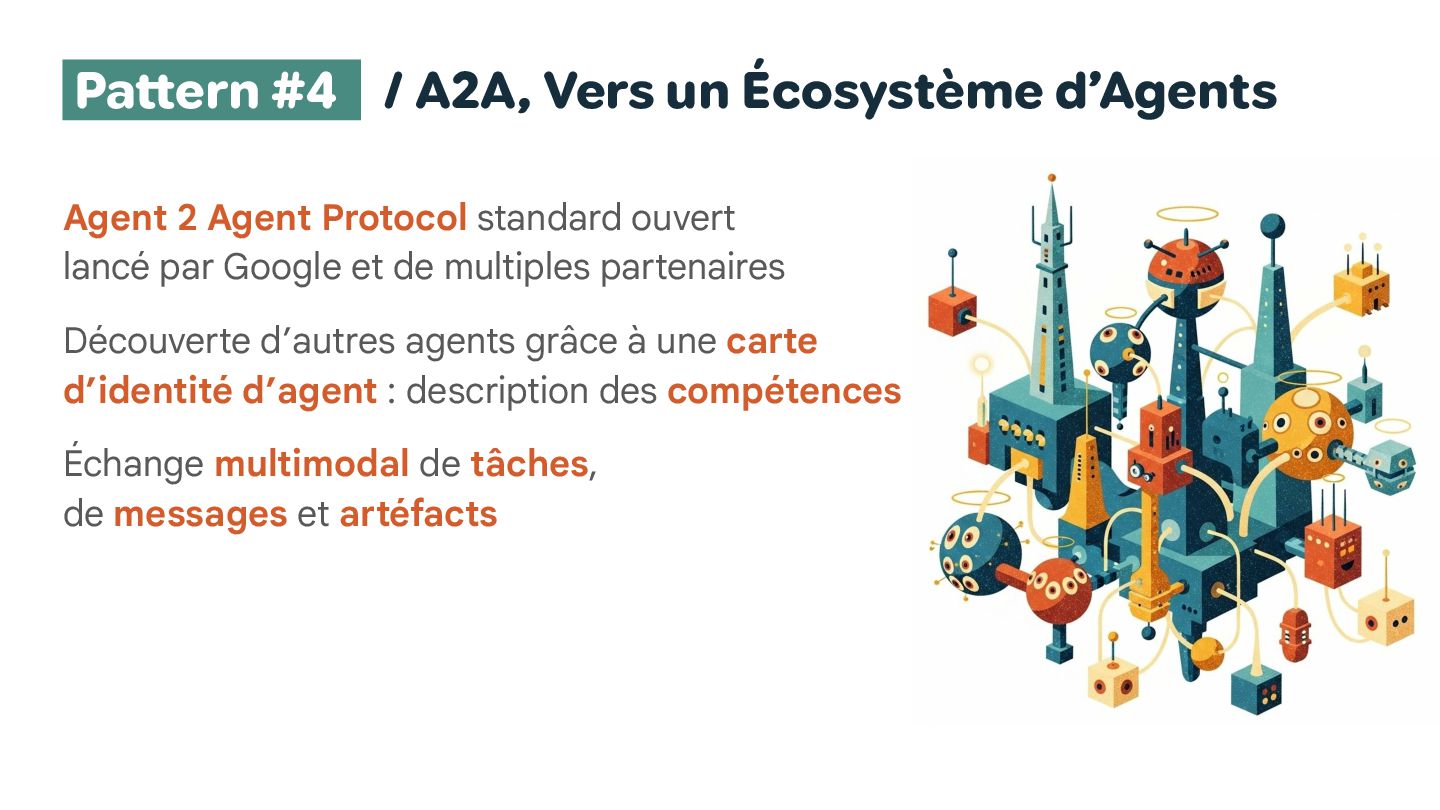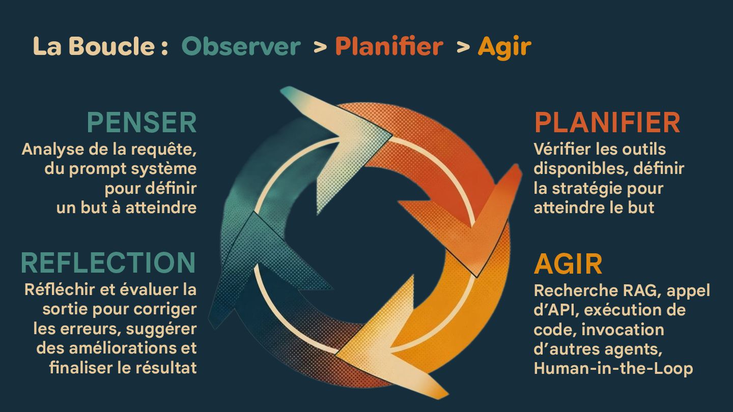 Buzzword de 2025, les agents IA ont fait couler beaucoup d’octets. Nous verrons ensemble les ingrédients clés de la recette : les modèles qui raisonnent, les outils et protocoles utilisés (function calling et MCP), comment orchestrer des agents ensemble (ADK, A2A), en passant par les patterns importants.