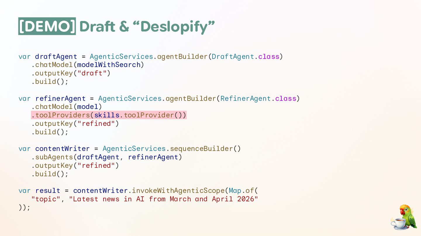 As a committer on both LangChain4j and ADK for Java (Agent Development Kit), it’ll be my pleasure to guide you through this agentic adventure, and help you make the right choices and use the right abstractions on your journey.