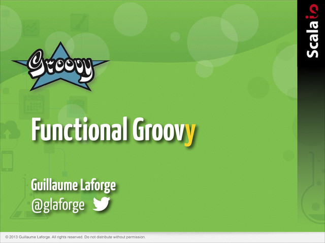 Functional Groovy • http://slideshare.net/paulk_asert/functional-groovy • Andres Almiray – Functional Groovy • http://slideshare.net/aalmiray/functional-groovy-confess • Arturo Herrero – Functional programming with Groovy • http://slideshare.net/arturoherrero/functional-programming-with-groovy • Neal Ford – Functional thinking • http://www.youtube.com/watch?v=7aYS9PcAITQ&feature=youtu.be • Mario Fusco – If you think you can stay away from FP, you are wrong • http://slideshare.net/mariofusco/if-you-think-you-can-stay-away-from-functional-programming-you-are-wrong Resources — Presentations !74