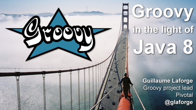 = Optional.of("Guillaume") ! def result = maybeName ?: "unknown" ! if (maybeName) { println maybeName.get() } else { println "unknown" } ! maybeName?.toUpperCase() Interesting discussions on the mailing-list to further enhance usage of Optional from Groovy