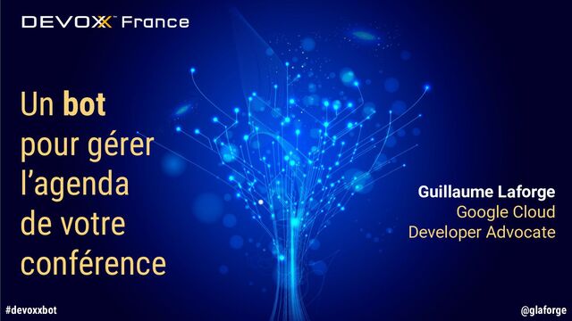 Et si vous tiriez parti d'un bot pour préparer et ajuster votre agenda pour la conférence ? Est-ce qu'il y a des présentations sur le Machine Learning, ou sur Docker, ou votre langage de programmation préféré ? Qui présente cette session ?