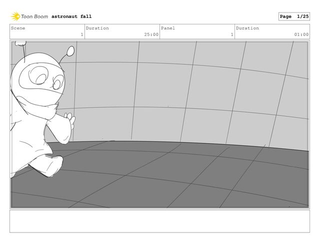 Scene 1 Duration 25:00 Panel 11 Duration 01:00 astronaut fall
