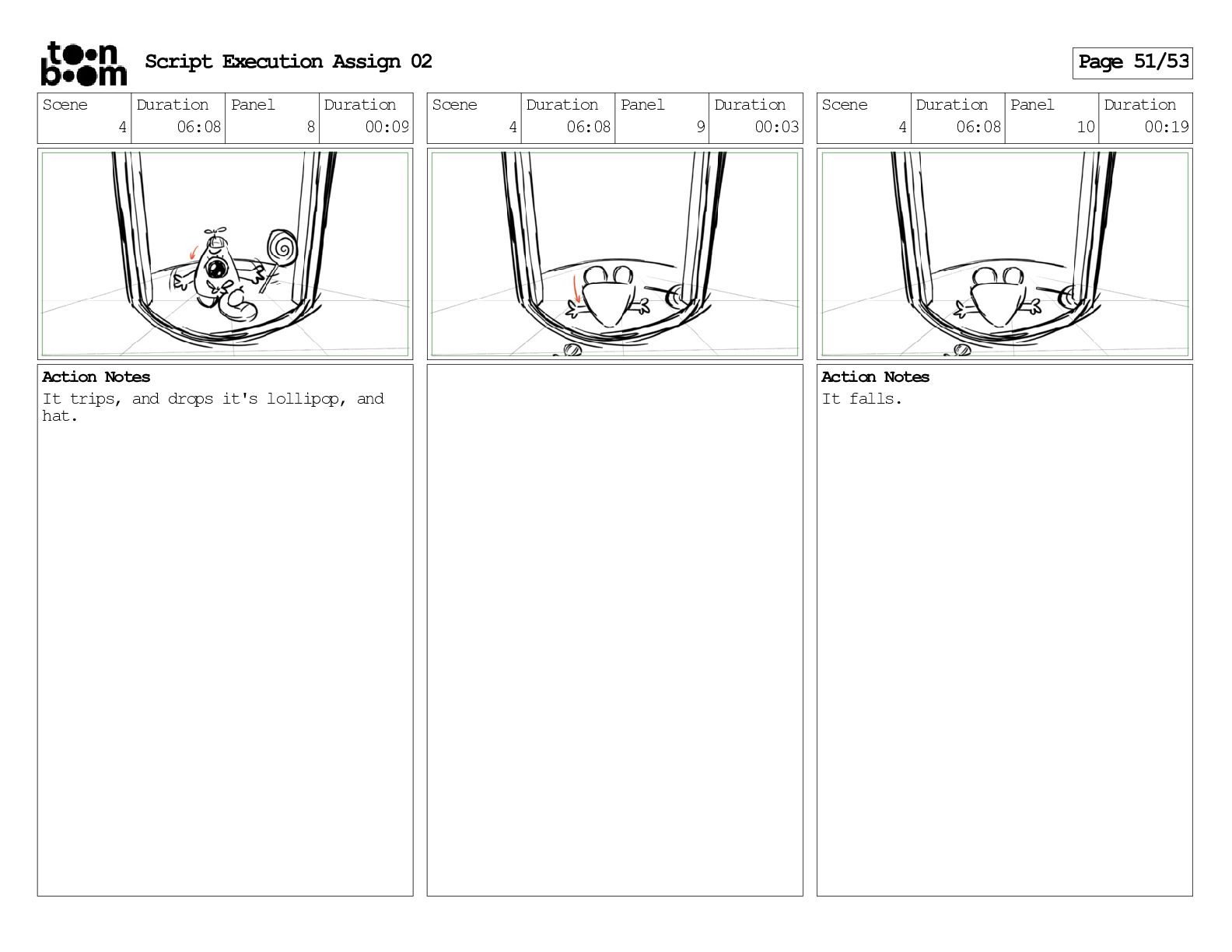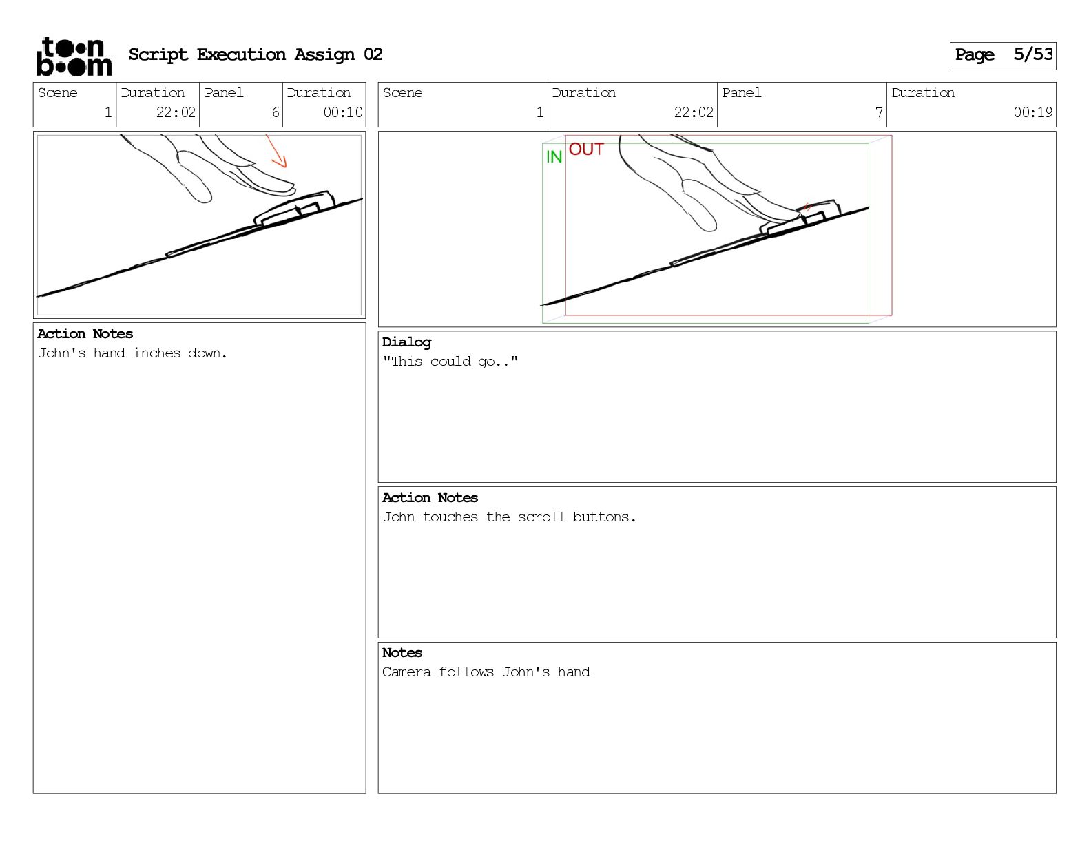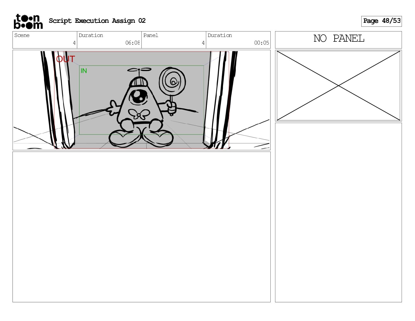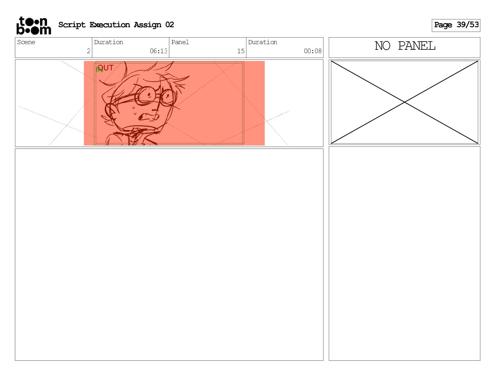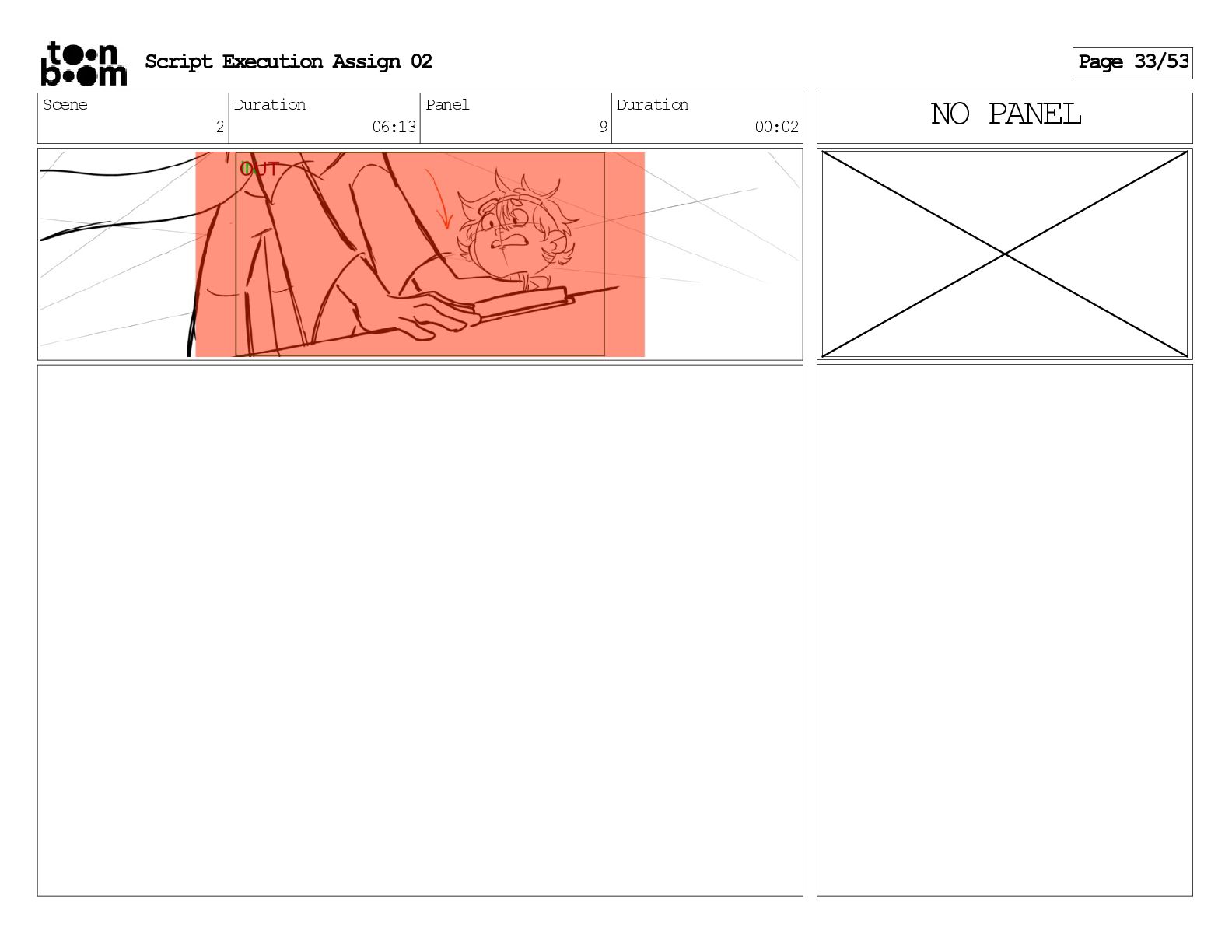 stills. Scene 3 Duration 04:01 Panel 9 Duration 01:02 Action Notes Both turn to face the machine. Scene 4 Duration 06:08 Panel 1 Duration 00:20 Action Notes The entity emerges from the dark. Notes Camera CUT to close up on entity, and PANS up to view it. Script Execution Assign 02 Page 46/53
