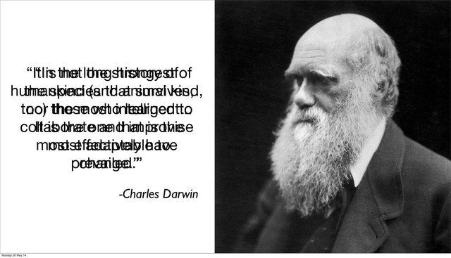 those who learned to collaborate and improvise most effectively have prevailed.” “It is not the strongest of the species that survives, nor the most intelligent... It is the one that is the most adaptable to change.” -Charles Darwin Monday 26 May 14