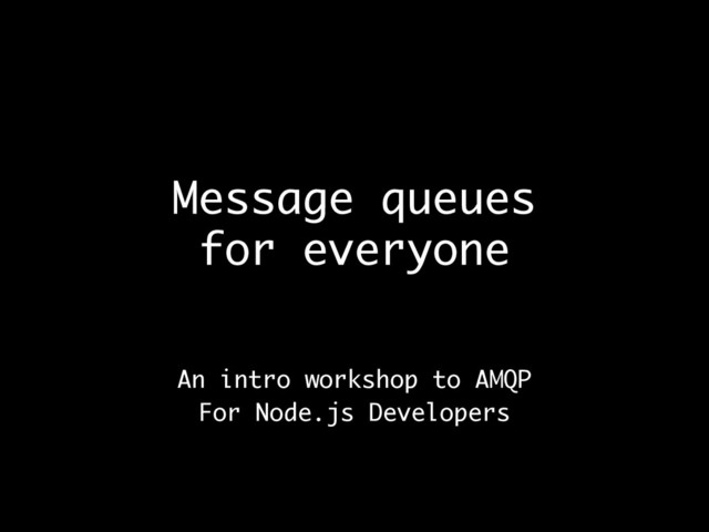 Message queues for everyone An intro workshop to AMQP For