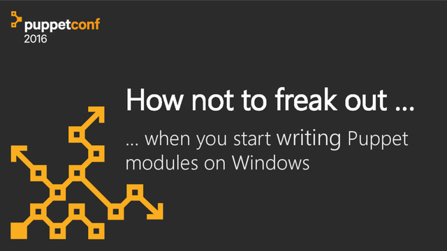 Writing your first Puppet module is pretty daunting. There are so many things to set up: tools, repositories, tests! In this presentation we’ll walk through setting up a local Windows development environment, and then write a Puppet module. We’ll also look at debugging, testing and publishing the module to the Puppet Forge.