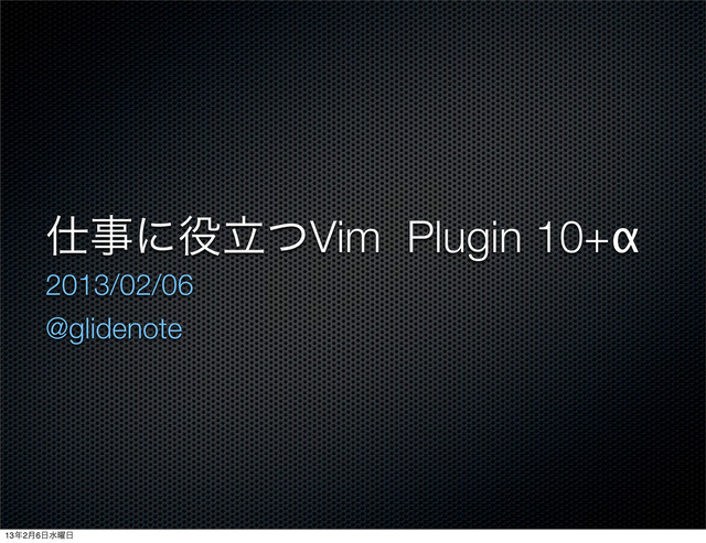 ࣄʹཱͭVim Plugin 10+α 2013/02/06 @glidenote 132݄6ਫ༵