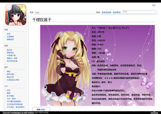 五分開 五分開 七分開 七分開 盛開 盛開 相識後 相識後 事件一後 事件一後 事件二後 事件二後 事件三後 事件三後 事件四後 事件四後 事件五後 事件五後 事件六後 事件六後 事件七後 事件七後 事件八後 事件八後 事件九後 事件九後 事件十後 事件十後 告白後 告白後 摸 頭 ↓ ↓ ↓ ↓ ↓ ↓ ↓ (↑)、→、↓ (↑)、→、↓ (↑)、→、↓ (↑)、→、↓ (↑)、→、↓ 牽 手 ↓ ↓ ↓ ↓ (↑)、→、↓ (↑)、→、↓ (↑)、→、↓ (↑)、→、↓ (↑)、→、↓ (↑)、→、↓ (↑)、→、↓ (↑)、→、↓ 接 吻 ↓ ↓ ↓ ↓ ↓ ↓ ↓ ↓ ↓ ↓ ↓ (↑)、→、↓ 背 景 →、↓ →、↓ →、↓ →、↓ →、↓ →、↓ →、↓ →、↓ →、↓ →、↓ →、↓ (↑)、→、↓ 不 做 →、↓ →、↓ →、↓ →、↓ →、↓ →、↓ →、↓ →、↓ →、↓ →、↓ →、↓ (↑)、→、↓ 戀愛特殊事件 好感度及學力和道德達到要求後,點擊千櫻院麗子,或是選擇正確的邀約選項,即會進入戀愛特殊事件,CG亦會在部分事件中取得。 若是好感度已滿但沒有開啟戀愛特殊事件並取得CG,無論如何邀約、閒聊或送禮都無法到達下個戀愛階段。 (PS.以下數值均為推測值,若已超過以下數值仍無法開啟戀愛特殊事件,請嘗試提高道德或其他學力,或是使好感上升。 戀愛特殊事 戀愛特殊事 件 件 條件 條件 CG 其他 其他 戀愛特殊事件 1 含苞後 雜學與魅力各40以上 劇情選項不影響劇情 CG1 戀愛特殊事件 2 絕對命令 (此為隱藏事件) 三分開後 好感約滿1/2 雜學與魅力各150以上,其他學力10以上 無 戀愛成就獎勵:約會能量飲料MAXx1,命運轉蛋 券x3 CG2 Convert webpages to pdf online with PDFmyURL