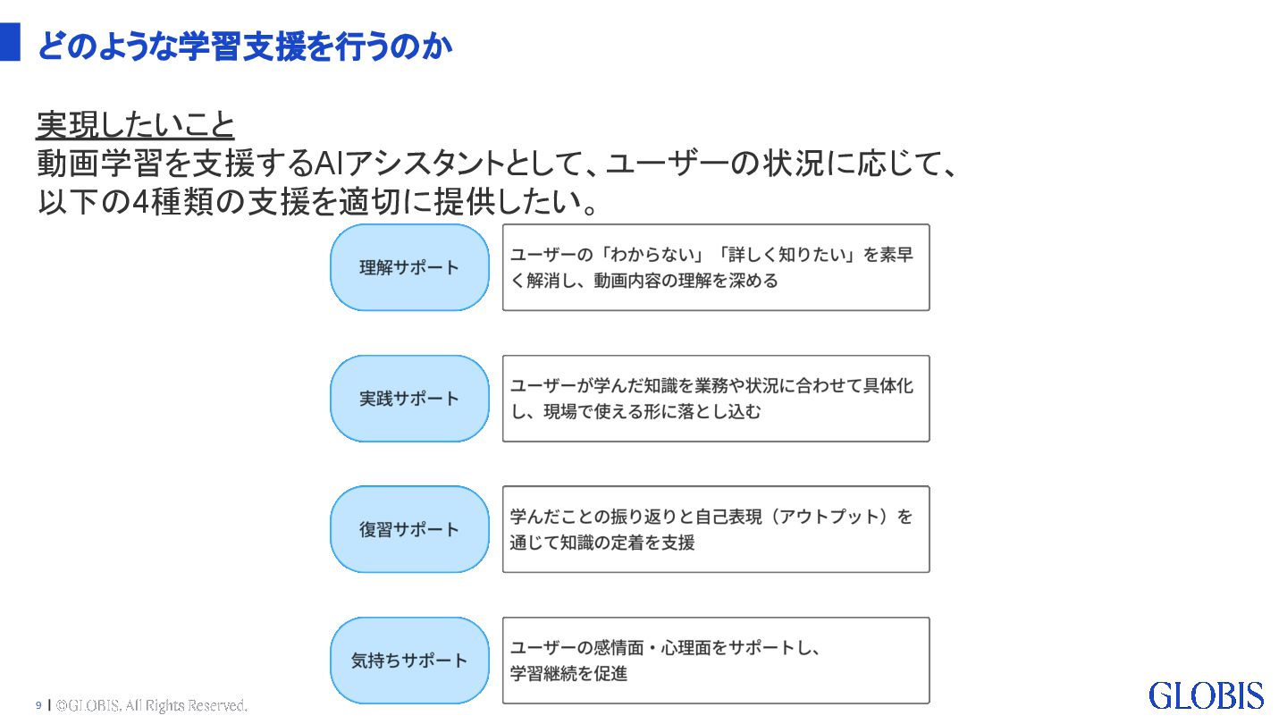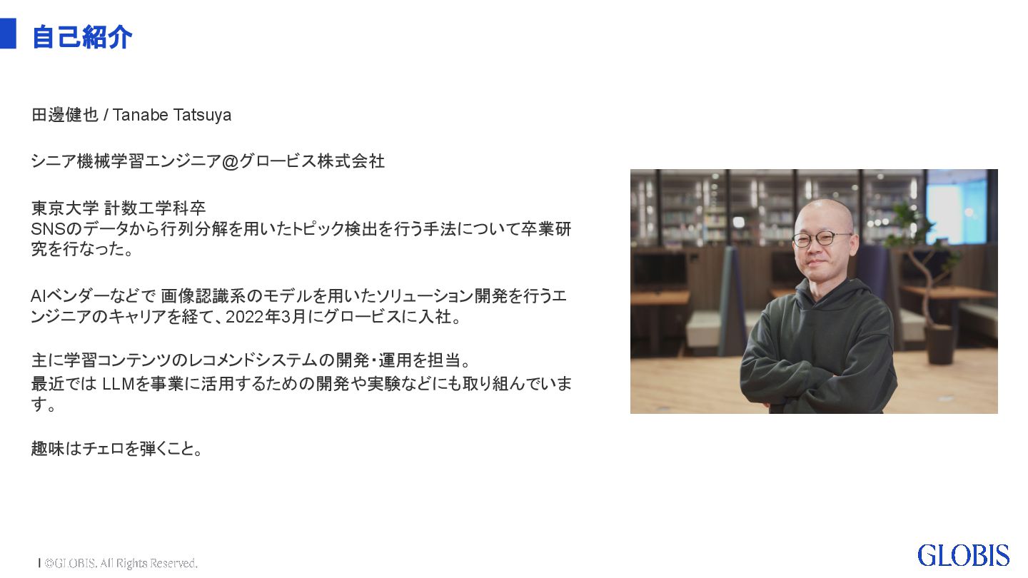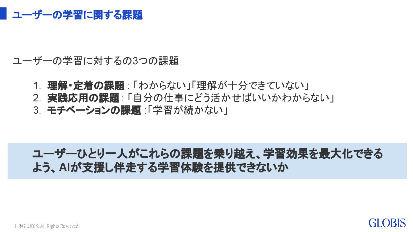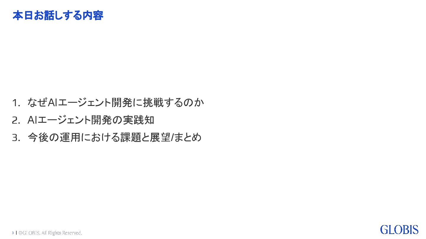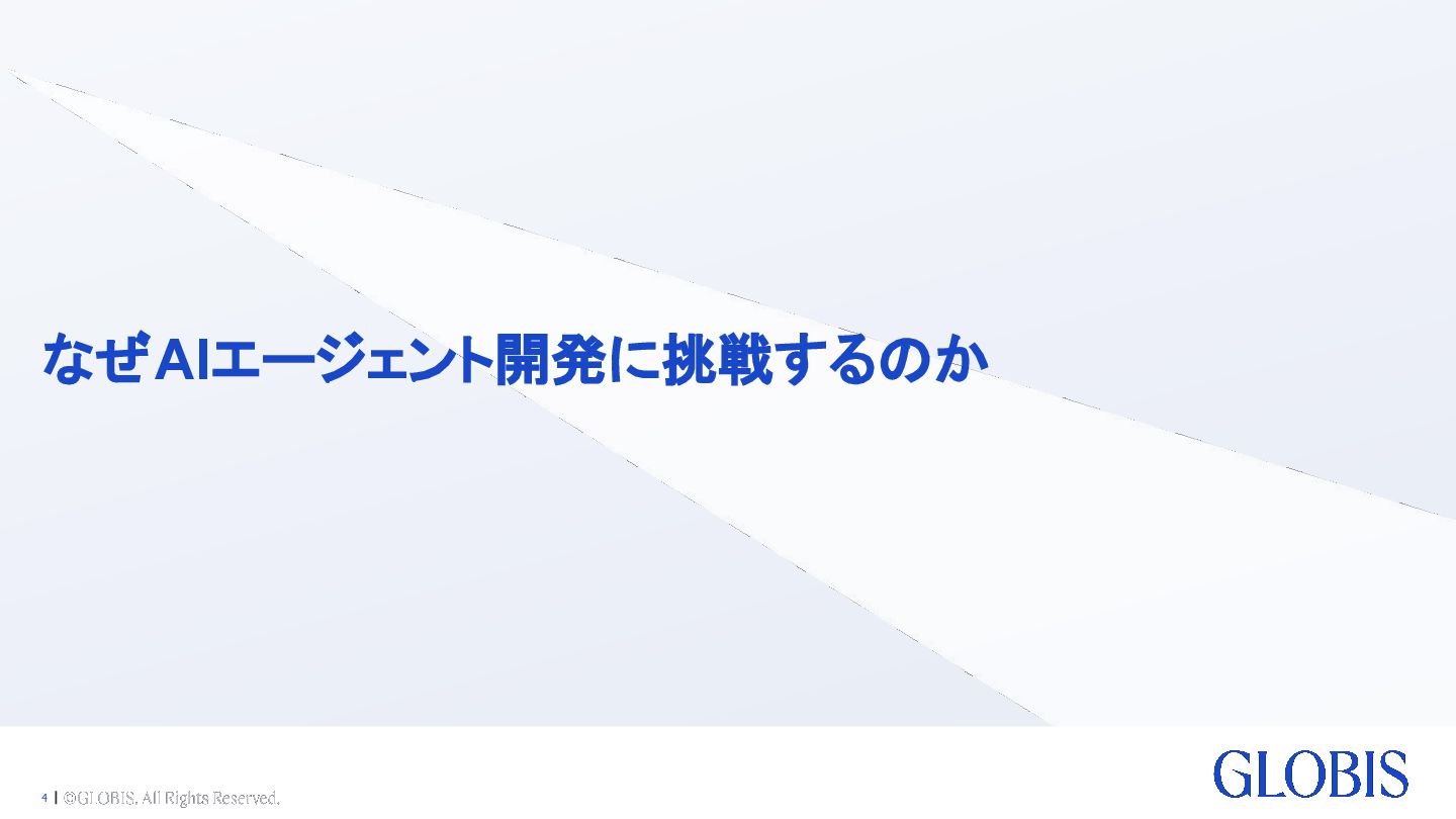 12/10(水)AIエージェント実装の壁と突破口〜プロダクト実装の実践知〜での発表内容です。 グロービスがAIエージェントを実装したうえでの難所や取り組みについて田邊がプレゼンテーションを実施しました。