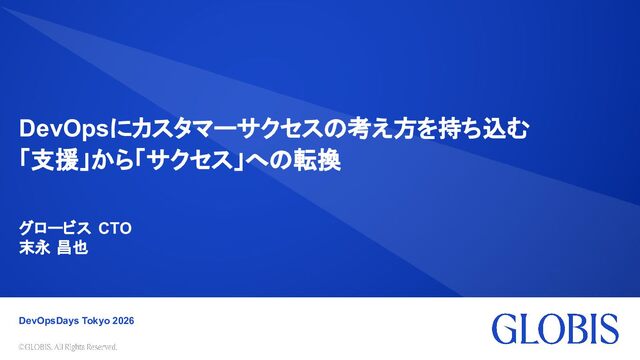 DevOpsにカスタマーサクセスの考え方を持ち込む 「支援」から「サクセス」への転換 グロービス CTO 末永 昌也 DevOpsDays Tokyo 2026