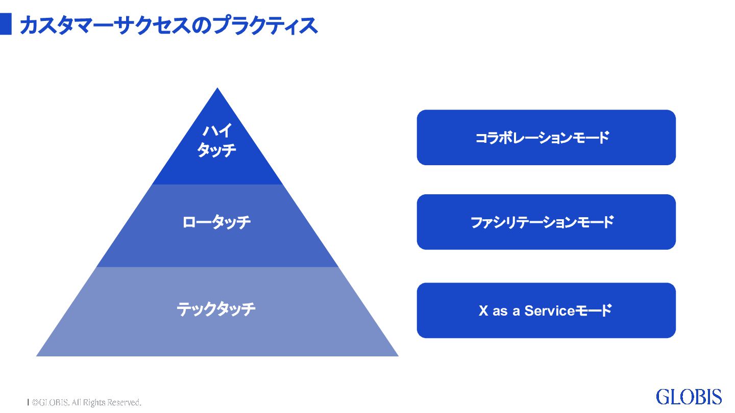 カスタマーサクセスのプラクティス テックタッチ ロータッチ ハイ タッチ コラボレーションモード ファシリテーションモード X as a