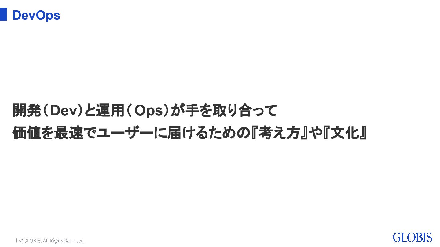 開発(Dev)と運用( Ops)が手を取り合って 価値を最速でユーザーに届けるための『考え方』や『文化』 DevOps