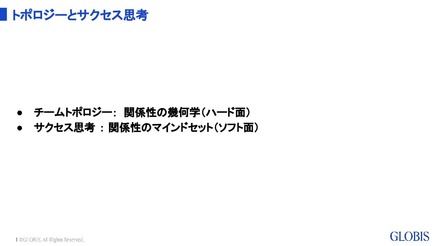 トポロジーとサクセス思考 • チームトポロジー: 関係性の幾何学(ハード面) • サクセス思考 : 関係性のマインドセット(ソフト面)