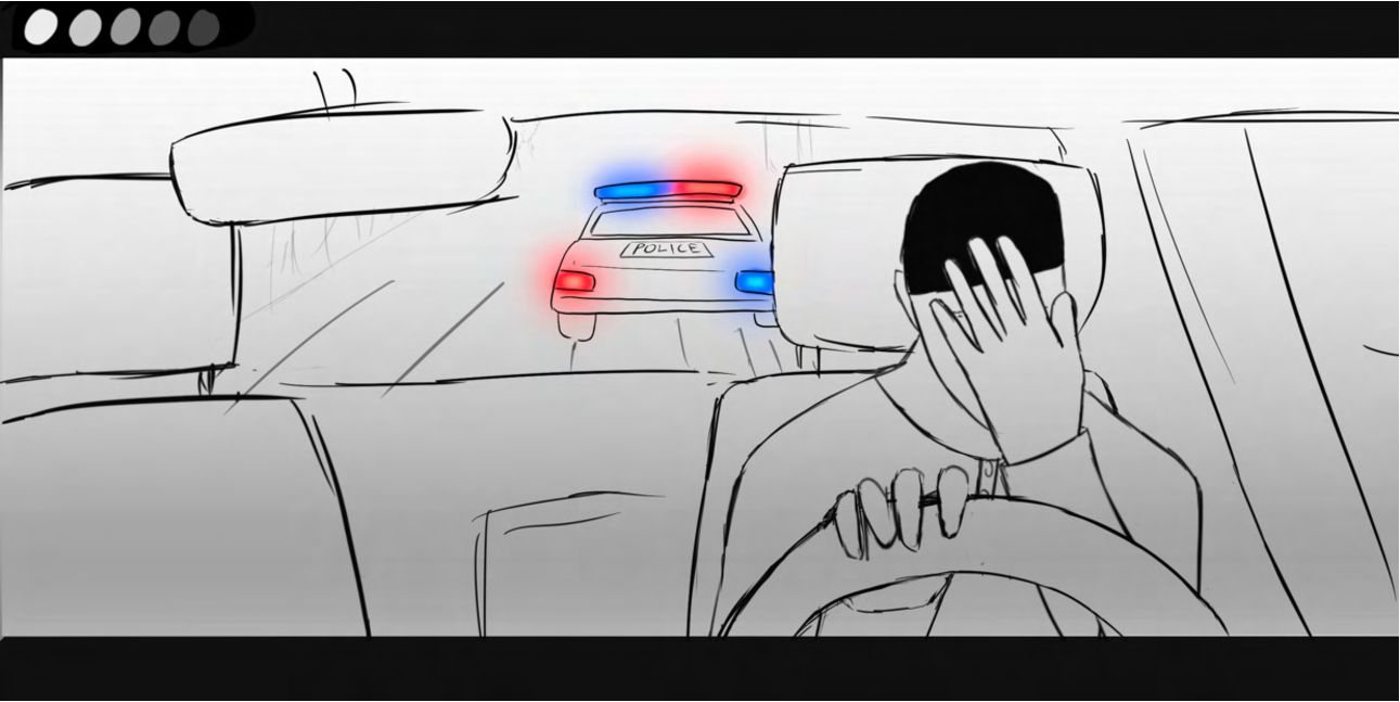 A guy being pulled over by the police after driving under the influence, or so he thought...