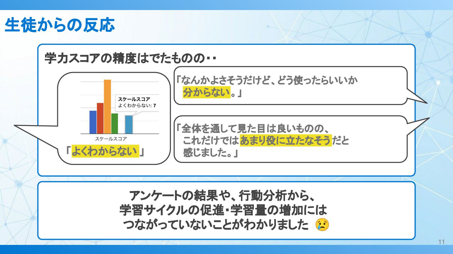 学力スコア 精度 でたも ・・ 生徒から 反応 11 「よくわからない 」 「なんかよさそうだけど、どう使ったらいいか