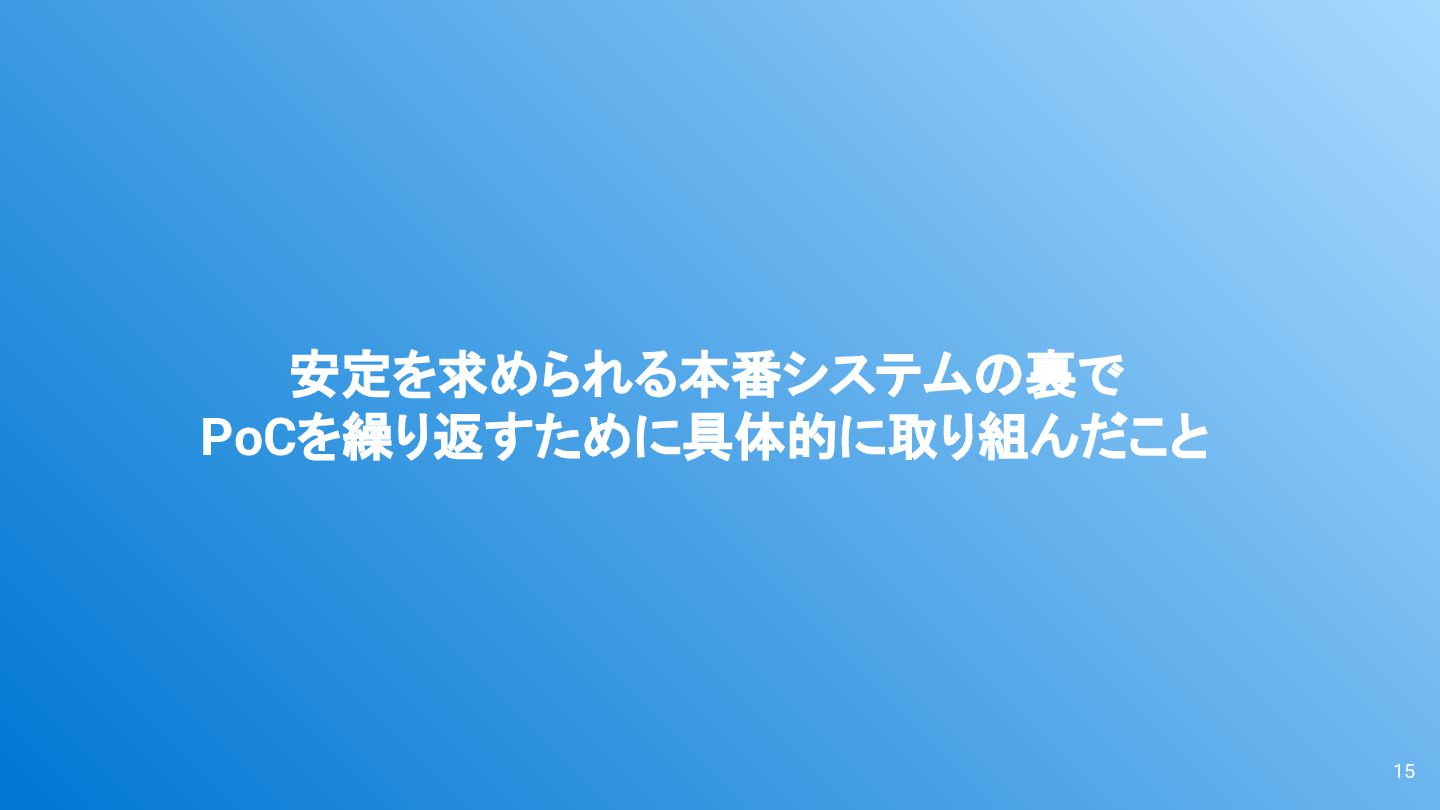 安定を求められる本番システム 裏で PoCを繰り返すために具体的に取り組んだこと 15