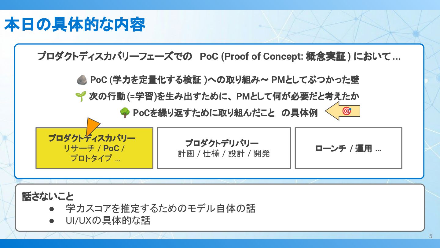 本日 具体的な内容 5 プロダクトディスカバリーフェーズで PoC (Proof of Concept: 概念実証 )