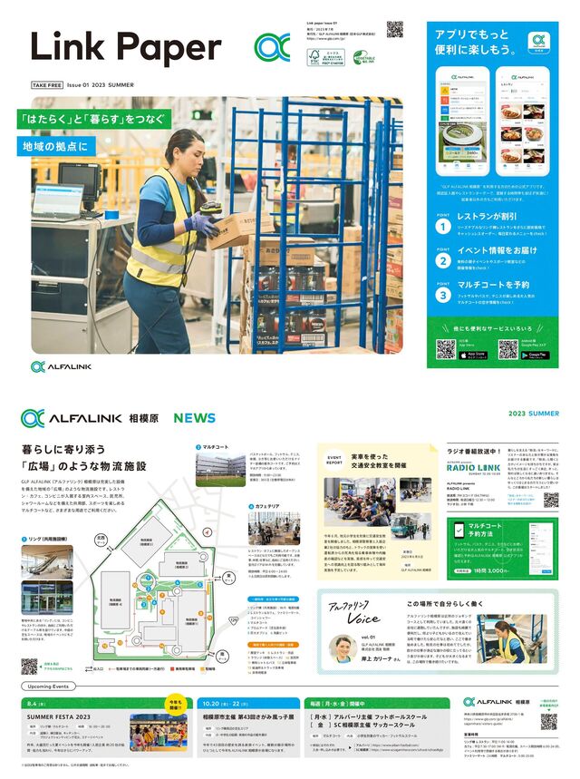 3 9 12 11 2 13 14 129 ྲྀࢪઃ ʢ૬ݪʣ ྲྀࢪઃ ʢ૬ݪʣ ྲྀࢪઃ ʢ૬ݪʣ ౦ ήʔτ ೆ ήʔτ ήʔτ Link Paper ΞϓϦͰͬͱ ศརʹָ͠͏ɻ ʠ(-1"-'"-*/, ૬ݪʡ Λར༻͢ΔํͷͨΊͷެࣜΞϓϦͰ͢ɻ إೝূೖؗϨετϥϯΦʔμʔͰɺ ࠞࡶ͢Δ࣌ؒଳฒͣշదʹʂ बۀऀҎ֎ͷํ͝ར༻͍͚ͨͩ·͢ɻ ଞʹศརͳαʔϏε͍Ζ͍Ζ ૬ݪ Β͠ʹدΓఴ͏ ʮʯͷΑ͏ͳ ྲྀ ࢪ ઃ (-1"-'"-*/, ʢΞϧϑΝϦϯΫʣ ૬ݪॆ࣮ͨ͠ઃඋ Λඋ͑ͨҬͷ ʮʯ ͷΑ͏ͳྲྀࢪઃͰ͢ɻ Ϩετϥ ϯɾΧϑΣɺ ίϯϏχ͕ೖډ͢Δࣨεϖʔεɺ ୗࣇॴɺ γϟϫʔϧʔϜͳͲΛඋ͑ͨڞ༻෦ɺ εϙʔπΛָ͠ΊΔ ϚϧνίʔτͳͲɺ ͞·͟·ͳ༻్Ͱ͝ར༻͍ͩ͘͞ɻ ʮͨΒ͘ʯ ͱ ʮΒ͢ʯ Λͭͳ͙ Ҭͷڌʹ Ϩετϥϯׂ͕Ҿ ϦʔζφϒϧͳϦϯά౩ϨετϥϯΛ͞Βʹׂ҆Ձ֨Ͱ ΩϟογϡϨεΦʔμʔɻ ຖมΘΔϝχϡʔΛDIFDLʂ 1 POINT ΠϕϯτใΛ͓ಧ͚ ແྉͷࢠΠϕϯτεϙʔπڭࣨͳͲͷ ։࠵ใΛDIFDLʂ 2 POINT ϚϧνίʔτΛ༧ ϑοταϧόεέɺ ςχεָ͕͠ΊΔେਓؾͷ Ϛϧνίʔτͷۭ͖ใΛDIFDLʂ 3 POINT Ӧۀ࣌ؒ Ϧϯά౩Ϩετϥϯɿ ฏɹ ΧϑΣ ɿ ฏ ʢ8Jpɾిݯඋɻ εϖʔε։์࣌ؒɻ Πϕϯτར༻Ͱด͢Δ߹͕͋Γ·͢ʣ ϑΝϛϦʔϚʔτɿ࣌ؒɹϚϧνίʔτɿ ૬ݪ ਆಸݝ૬ݪࢢதԝ۠ా໊ࣈࡔଞ IUUQTXXXHMQDPNKQBMGBMJOL TBHBNJIBSBWJTJUPSTHVJEF vol. 01 (-1"-'"-*/,૬ݪ גࣜձࣾ༑ۈ ؛্ΧϦʔφ͞Μ ΞϧϑΝϦϯΫ૬ݪۙॴͷδϣΪϯά ίʔεͱͯ͠ར༻͍ͯ͠·ͨ͠ɻ ݩʑԕ͘ͷ ձࣾʹ௨ۈ͍ͯͨ͠ΜͰ͕͢ɺ ࢪઃ៉ྷͰ ศརͩ͠ɺ ԿΑΓࢠͲ͕͍ΔͷͰॅΜͰ͍ ΔொͰಇ͚ͨΒ҆৺ͩͳͱࢥ͍ɺ ͜͜Ͱಇ͖ ࢝Ί·ͨ͠ɻ ྲྀͷࣄॳΊͯͰ͕ͨ͠ɺ ࣗͷࣄ͕ۙͳ୭͔ͷʹཱͬͯΔͱ͍ ͏تͼ͕͋Γ·͢ɻ ࢠͲ͕େ͖͘ͳΔ·Ͱ ɺ ͜ͷॴͰಇ͖ଓ͚͍ͨͰ͢Ͷɻ ͜ͷ ॴ ͰࣗΒ͘͠ಇ͘ 8.4 [ۚ] 46..&3'&45" ࡢɺ େگͩͬͨՆΠϕϯτΛࠓ։࠵ʂೖډاۀ ࣾͷڠ ࢍɾڠྗՃΘΓɺ ࠓ͞ΒʹύϫʔΞοϓɻ ॴ Ϧϯά౩ɾϚϧνίʔτ ࣌ؒ ɿʙɿ ༰ ຍགྷΓɺ ԑɺ ΩονϯΧʔɺ ϓϩδΣΫγϣϯϚοϐϯάՖՐɺ εςʔδΠϕϯτ 10.20 [ۚ] - 22 [] ૬ݪࢢओ࠵ୈճ͕͞Έ෩ͬࢠల ࠓͰ ճͷྺ࢙ΛތΔඒज़Πϕϯτɻ ෳͷలࣔॴͷ ͻͱͭͱͯ͠ࠓ "-'"-*/, ૬ݪ͕ձʹͳΓ·͢ɻ ॴ Ϧϯά౩पลͷࣳੜΤϦΞ ༰ খɾதֶੜͷਤըɾඒज़ͷ࡞ͷ֎లࣔ ຖि ʦ݄ ɾ ਫ ɾ ۚʧ ։࠵த ॴ Ϛϧνίʔτ ༰ খֶੜରͷαοΧʔɾ ϑοταϧεΫʔϧ ΞϧόʔϦओ࠵ϑοτϘʔϧεΫʔϧ ʦ݄ ɾ ਫʧ ʦ ۚ ʧ4$ ૬ݪओ࠵αοΧʔεΫʔϧ ˞ࢀՃʹͦΕͧΕ ɹೖձɾਃ͠ࠐΈ͕ඞཁͰ͢ɻ ʦΞϧόʔϦʧ IUUQTXXXBMCBSJGPPUCBMMDPN ʦ4$૬ݪʧ IUUQTXXXTDTBHBNJIBSBDPNTDIPPMTDIPPMHMQ ࠓ ։࠵ ʂ ʂ 2023 SUMMER Upcoming Events Issue 01 2023 SUMMER TAKE FREE ࠓ ݄ɺ ݩখֶੜΛରʹަ௨҆શڭ ࣨΛ։࠵͠·ͨ͠ɻ ૬ݪܯॺͱೖډا ۀࣾͷڠྗͷͱɺ τϥοΫͷ࣮ंΛ͍ ӡస੮͔Βͷࢮ֯ΛΔंମݧྠ ࠩͷ֬ೝͳͲΛ࣮ࢪɻ ࣮ײΛͬͯަ௨҆ શͷҙ্ࣝΛਤΔऔΓΈͱͯ͠ຖ ࣮ࢪΛ༧ఆ͍ͯ͠·͢ɻ ࣮ࢪ ݄ ॴ (-1"-'"-*/, ૬ݪ ࣮ंΛͬͨ ަ௨҆શڭࣨΛ։࠵ EVENT REPORT ϑοταϧɺ όεέɺ ςχεɺ ϤΨͳͲʹ͓͍ ͍͚ͨͩΔେਓؾͷϚϧνίʔτɻ ۭ͖ঢ়گͷ ֬ೝͱ༧ "-'"-*/,૬ݪެࣜΞϓϦ͔ Βߦ͑·͢ɻ Ϛϧνίʔτ ༧ํ๏ 1࣌ؒ3,000ԁʙ ར༻ྉۚ Ұൠͷํ͚ དྷऀҊ23 Ұൠར༻ɾཱ͓ͪدΓՄೳͳࢪઃ 1Ϧϯά౩ʢڞ༻ࢪઃʣ ɿ8Jpɾిݯඋ 2ϨετϥϯˍΧϑΣɺϑΝϛϦʔϚʔτɺ ίΠϯγϟϫʔ 3Ϛϧνίʔτ 4ϓϩϜφʔυʢࣳੜ༡าಓʣ 5ڊେΦϒδΣɹ6໔ϐοτ 7లσοΩɹ8Ϩετϥϯɾചళ 9ϥϯδ ʢٳܜεϖʔεʣ ɹ10ୗࣇॴ 11ແྉγϟτϧόεɹ12ཱମறं 13څ༉ॴˍτϥοΫચं 14ඇৗ༻ిݯ ࢪઃͰಇ͘ਓ͚ͷࢪઃɾઃඋ ෑதԝʹ͋Δ ʮϦϯάʯ ʹɺ ίϯϏχ Ϩετϥϯͷ΄͔ɺ ࣗ༝ʹ͝ར༻͍ͨͩ ͚Δςʔϒϧ੮Λઃ͚͍ͯ·͢ɻ தఉͷ ࣳੜεϖʔεɺ ҬͷΠϕϯτʹ͝ ར༻͍͚ͨͩ·͢ɻ Ϧϯά ʢڞ༻ࢪઃ౩ʣ 1 όεέοτϘʔϧɺ ϑοταϧɺ ςχεɺ ମૢɺ ϤΨʹ͓͍͍͚ͨͩΔφΠ λʔઃඋͷ֎ίʔτͰ͢ɻ ͝༧ε ϚϗΞϓϦ͔Βঝ͍ͬͯ·͢ɻ ։์࣌ؒʙ Ӧۀ ʢશؗఀిٳΈʣ Ϛϧνίʔτ 2 ϨετϥϯɾΧϑΣʹྡͨ͠Φʔϓϯε ϖʔεͲͳͨͰ͝ར༻ՄೳͰ͢ɻ ͓৯ ࣄɺ ٳܜɺ ࣄͳͲɺ ࣗ༝ʹ͝׆༻͍ͩ͘͞ɻ ࣨΤϦΞ8J'JΛඋ͍ͯ͠·͢ɻ ։์࣌ؒฏʙ ˞ॕݪଇด͍ͨ͠·͢ɻ ΧϑΣςϦΞ 6 ग़ೖޱ றं·Ͱͷं྆ಉઢ ʢҰํ௨ߦʣ ༻ंறं றྠ Ҭ पล ΞΫηε."1ͪ͜Β "OESPJE ൛ (PPHMF1MBZε τ Ξ J04 ൛ "QQ4UPSF ALFALINK presents RADIO LINK ์ૹہɿ'.ϤίϋϚ ʢ.)[ʣ ์ૹ࣌ؒɿຖि༵ʙ ϥδΦ%+ɿখྛઍ Β͠Λࢧ͑Δ ʮྲྀʯ ΛΩʔϫʔυʹɺ Ϧεφʔͷ͋ͳͨͱ͕֗ܨ͕ΔใΛ ͓ಧ͚͢Δ൪Ͱ͢ɻ ʮྲྀʯ ͱฉ͘ͱ Χλ͍ΠϝʔδΛ͕࣋ͪͪͰ͕͢ɺ ࣮ ࢲͨͪͷੜ׆ʹͬۙ͘͢͝ɻ ͖ͬͱɺ Εָ͘͠ͳΔʹҧ͍͋Γ·ͤΜɻ ͦ Μͳͱ͜Ζ͔Βࢲͨͪͷ৽͍͠Β͠ Ώͬ͘Γ͡·ΔͷͩΖ͏ͱ͍͏͍͔ Βɺ ͜ͷ൪ελʔτ͠·ͨ͠ʂ ϥδΦ൪์ૹதʂ ʮྲྀʯ ΛΩʔϫʔυʹɺ Ϧεφʔͷ͋ͳͨͱ͕֗ ܨ͕ΔใΛ͓ಧ͚ʂ Link paper issue 01 ൃߦʗ ݄ɹ ൃߦݩʗ(-1"-'"-*/, ૬ݪ ʢຊ (-1 גࣜձࣾʣ IUUQTXXXHMQDPNKQ 11 ˞றंͷ͝༻ҙ͋Γ·ͤΜɻ ެڞަ௨ػؔɾࣗసंɾెาͰ͓ӽ͍ͩ͘͠͞ɻ ૬ݪଠ